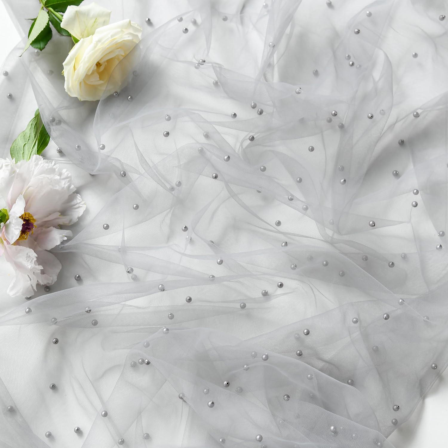 Artoid Mode Pearl Grey Gauze Table Runner 120 Inch 10FT, Seasonal Sheer Dining Holiday Wedding Birthday Baby Shower Table Decor for Home Party