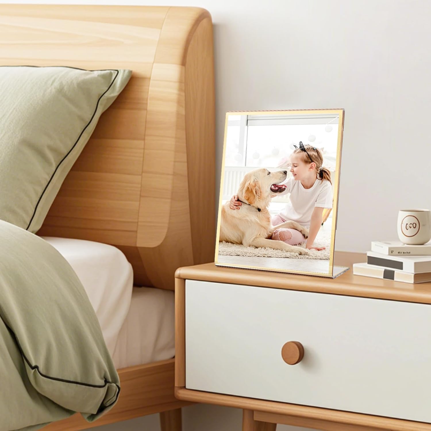 Acrylic Gold Frames 8 x10, Slanted Back Gold Picture Frames Table Acrylic Sign Holder for Photos Wedding Table Numbers and Art Display with Removable Clear Sticky Dots,6 Pack