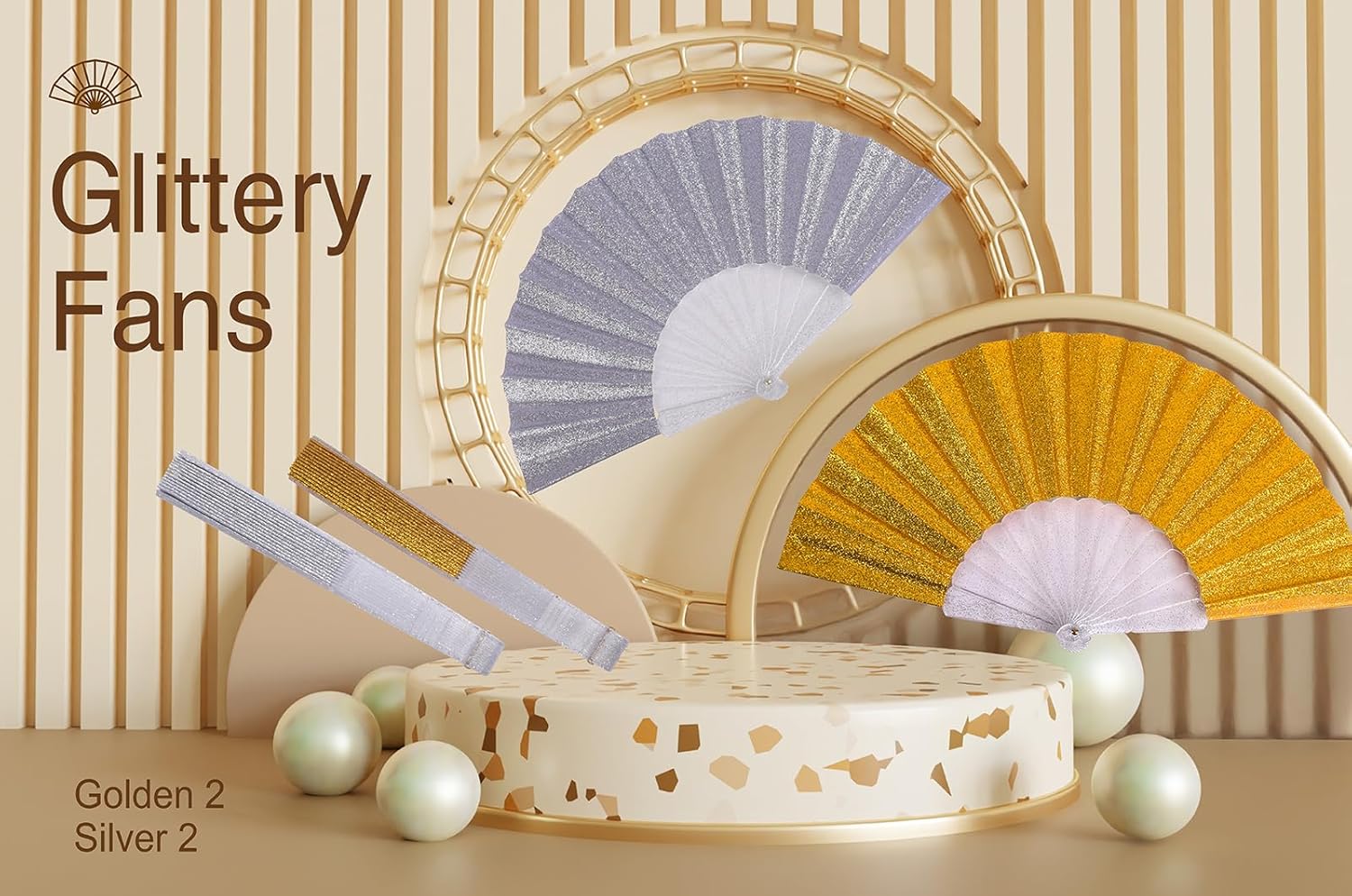 HUNANBANG Glitter Folding Hand Fan for Men Women Acrylic Folding Clack Hand Fan for Music Disco Rave Festival Party Supplies (Glitter slv2gd2)