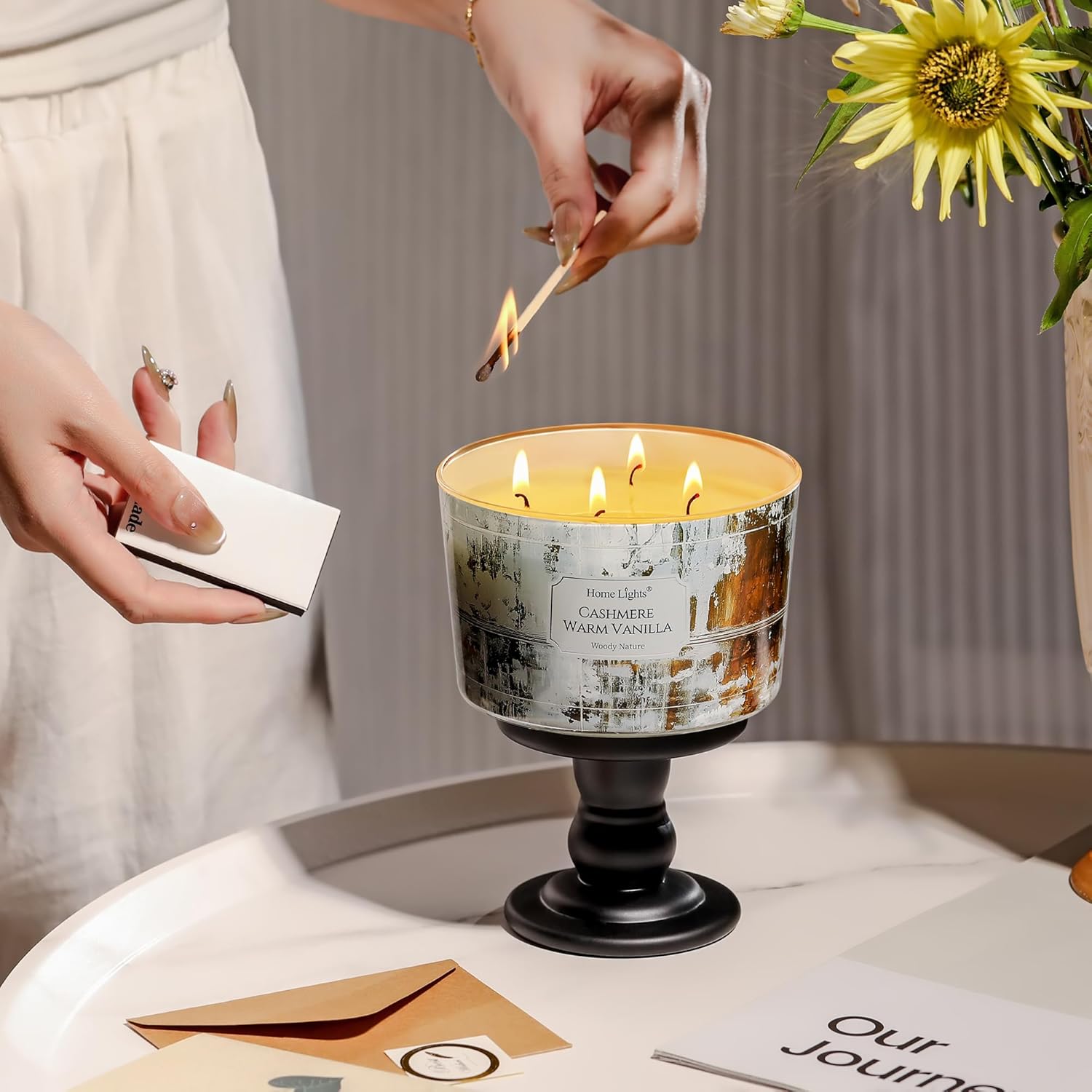 HomeLights Scented Candles for Women & Men, 18oz Candle Jars Aromatherapy 4-Wick Candle, Ideal for Industrial Chic Home Decor and Gifts, Cashmere Warm Vanilla