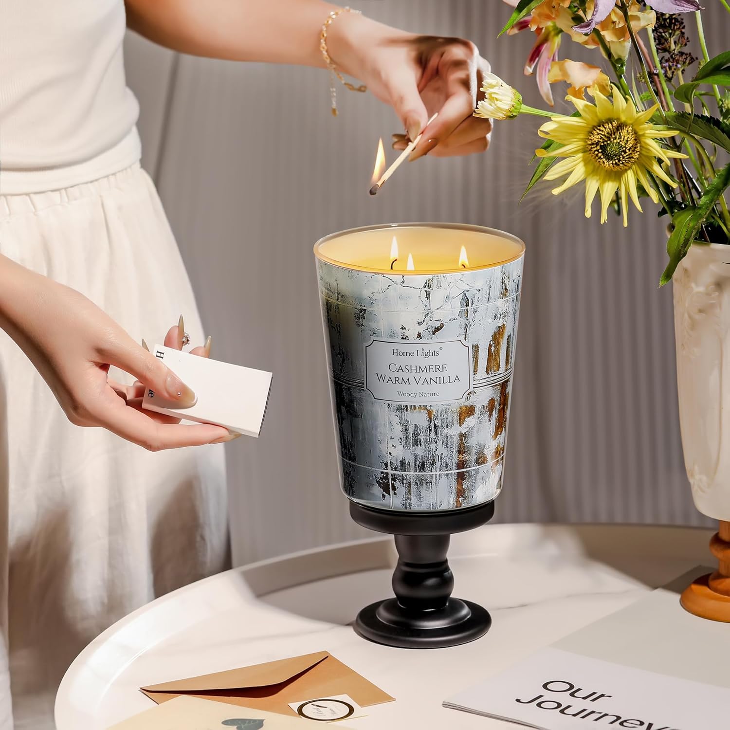 HomeLights Scented Candles for Women & Men, 34oz Candle Jars Aromatherapy 3-Wick Candle, Ideal for Industrial Chic Home Decor and Gifts, Cashmere Warm Vanilla
