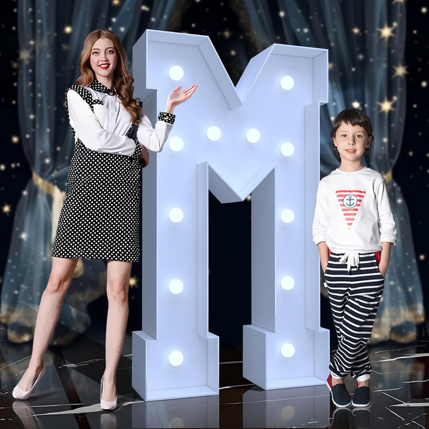 4FT Marquee Light Up Letters M – Cool White LED, Easy to Assemble Foam Board with Back Support, Large Marquee Light Up Letters for Birthday, Wedding, Party, Anniversary, Baby Shower Decor