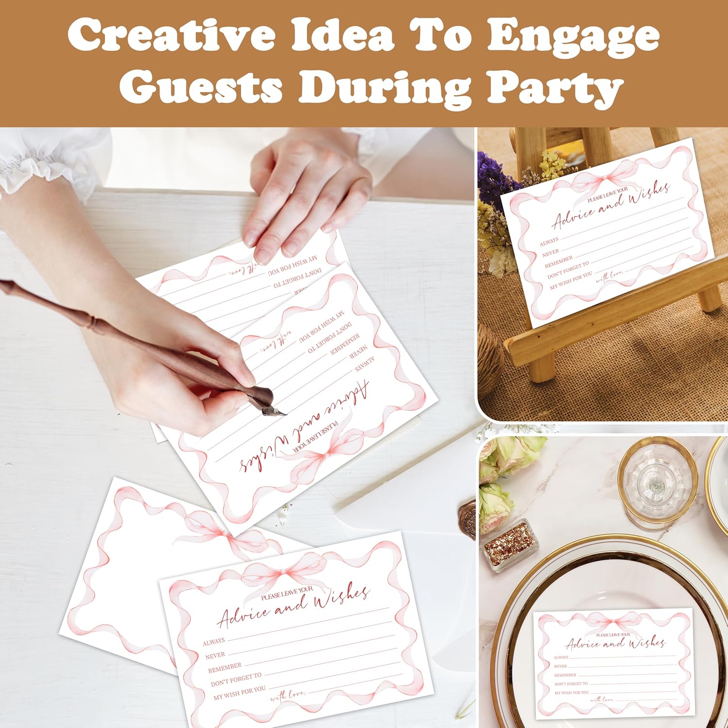 Advice And Wishes Cards (25pcs), Pink Bow Advice Cards For Mr And Mrs, Bride And Groom, New Parents, Bridal Shower, Baby Shower, Engagement, Wedding, Bachelorette Party Games Decor -A10