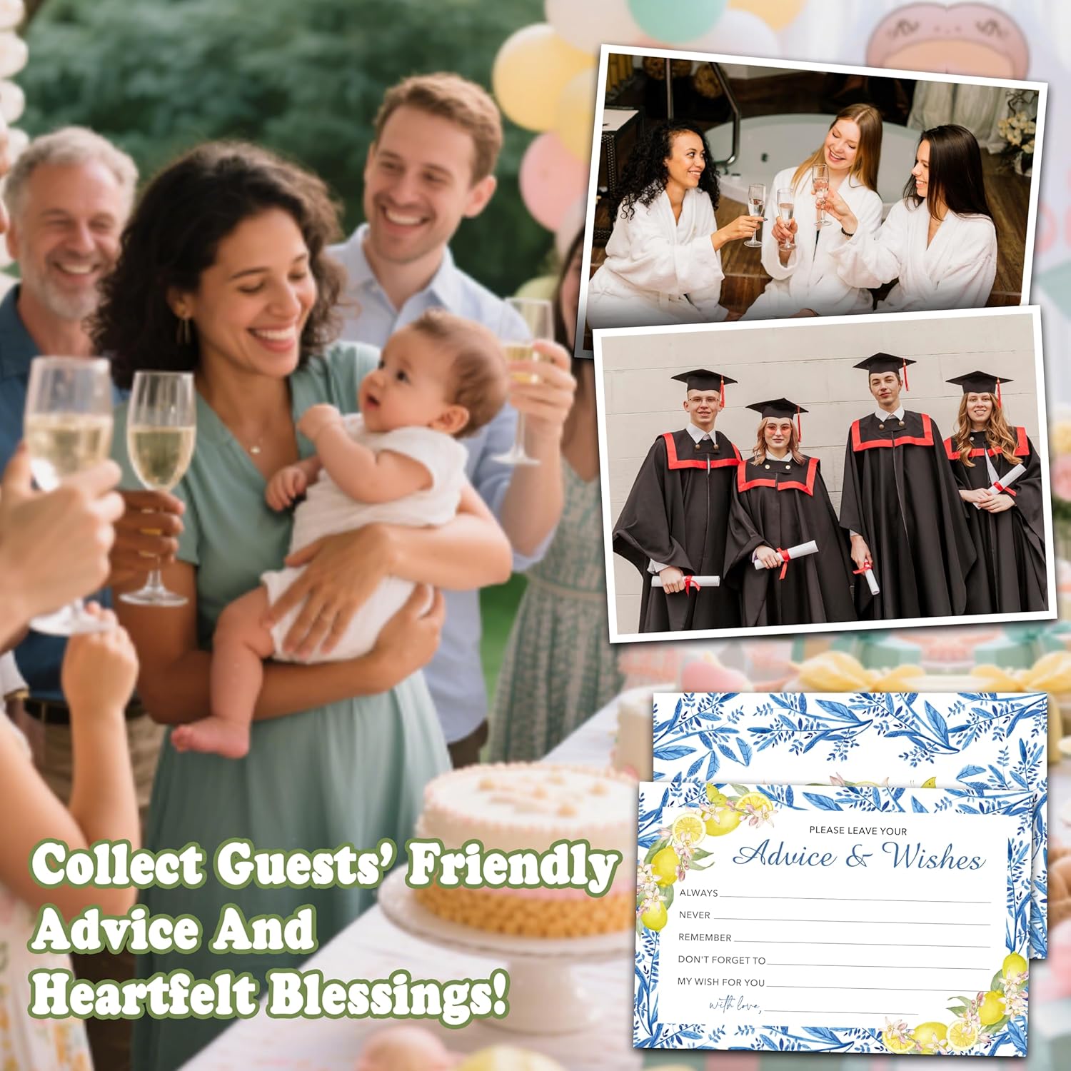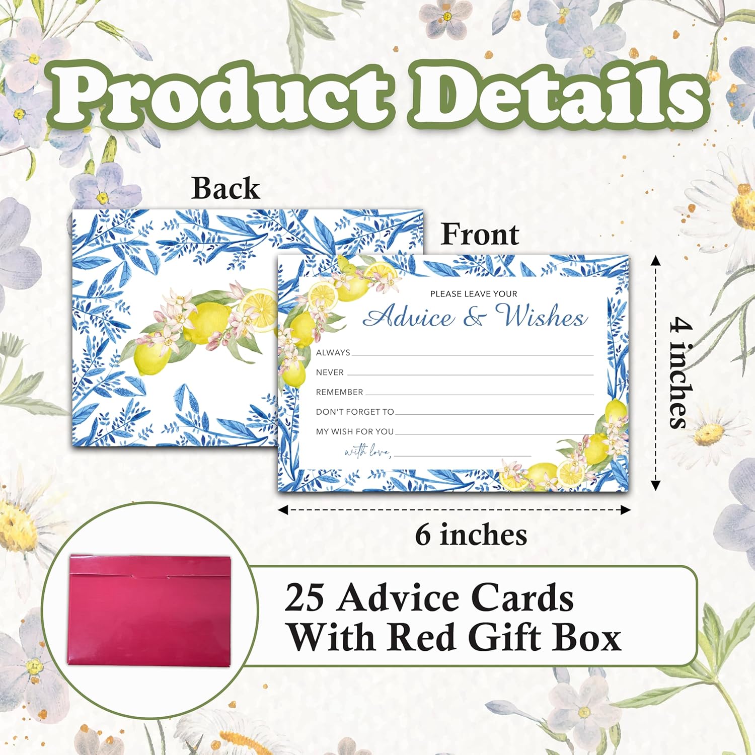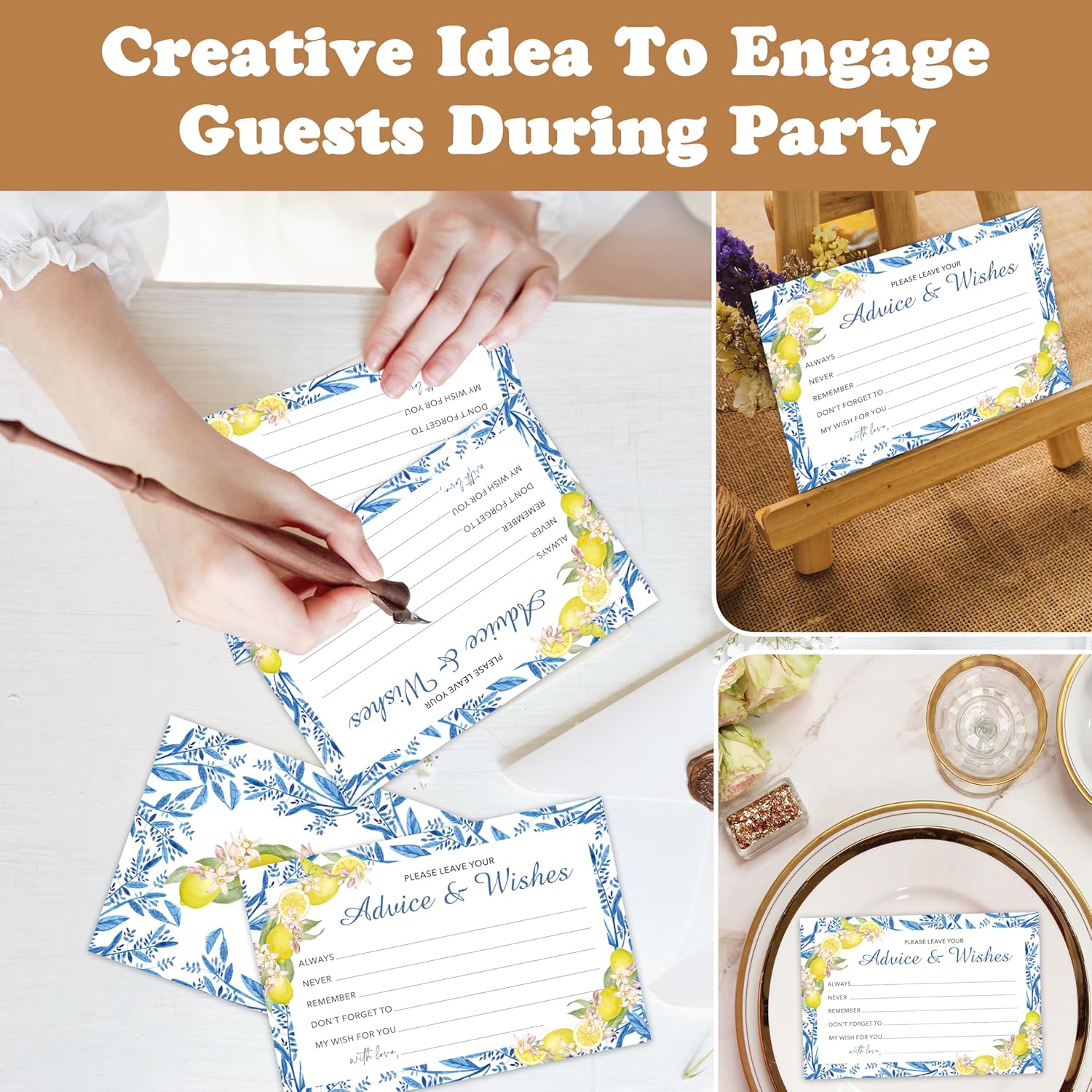 Advice And Wishes Cards (25pcs), Mediterranean Lemon Advice Cards For Mr And Mrs, Bride And Groom, New Parents, Bridal Shower, Baby Shower, Engagement, Wedding, Bachelorette Party Games Decor -A04
