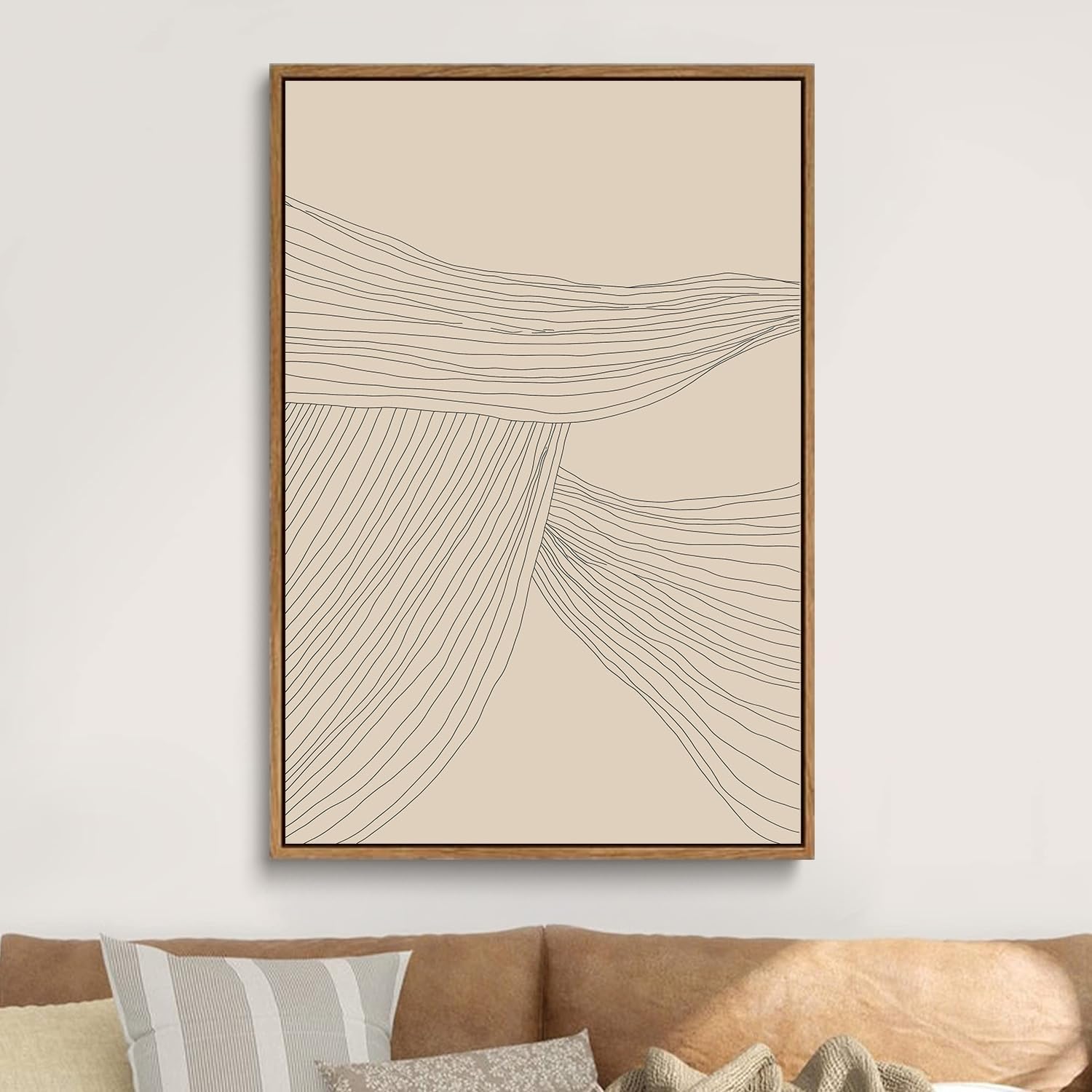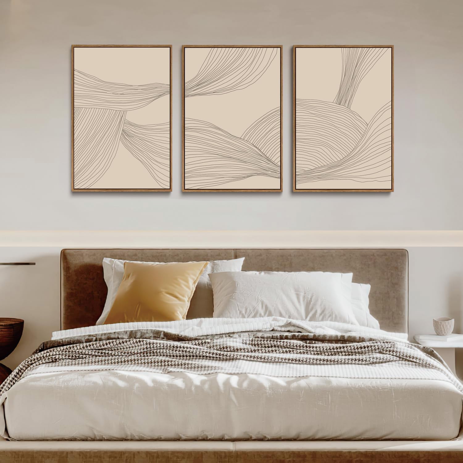 myusuar 3 Piece Large Modern Abstract Canvas Framed Wall Art For Living Room, Beige Minimalist Wall Art Decor Posters Prints For Bedroom Office, 16x24in