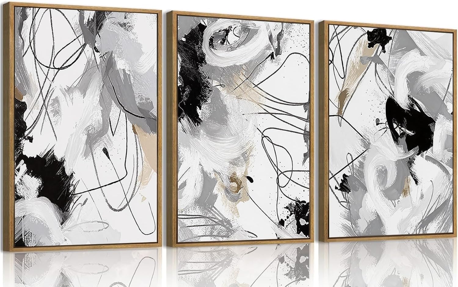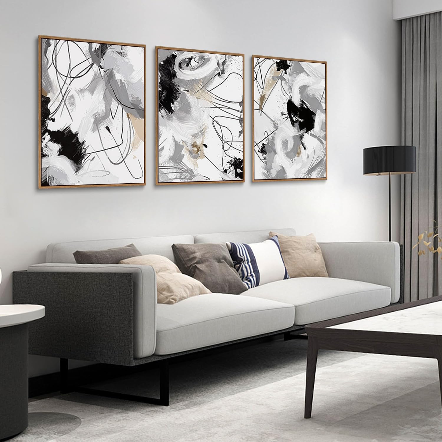- Modern Abstract Canvas Wall Art For Living Room: This set of 3 features beautifully framed abstract canvas wall art. The frames not only enhance the aesthetic appeal but also protect the canvas, making it a durable and stylish addition to your wall decor.
