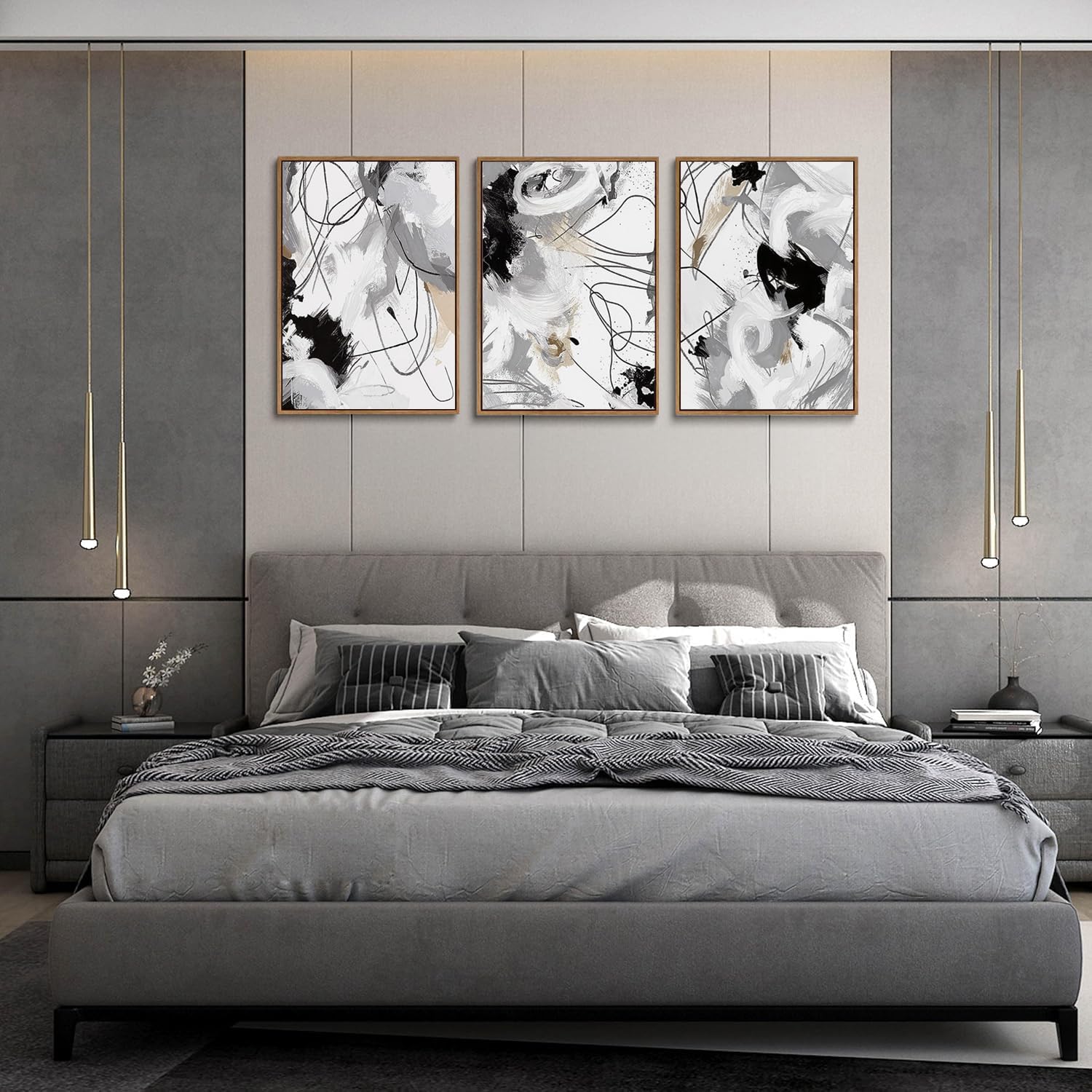 - Black And White Wall Art: The black and white color scheme creates a timeless and sophisticated look. The minimalist design with grey accents is versatile, easily complementing various interior styles from modern to classic.