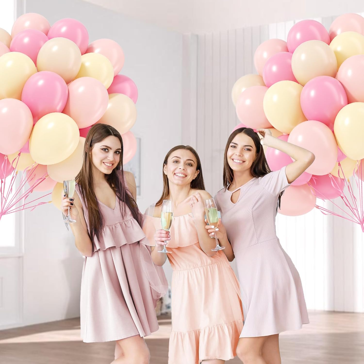 - What You Will Get: The package includes 12inch pink balloonsx20, 12inch light pink balloonsx20, 12inch pastel yellow balloonsx10, 12inch sand white balloonsx10, glue dotsx20, pink ribbonx1