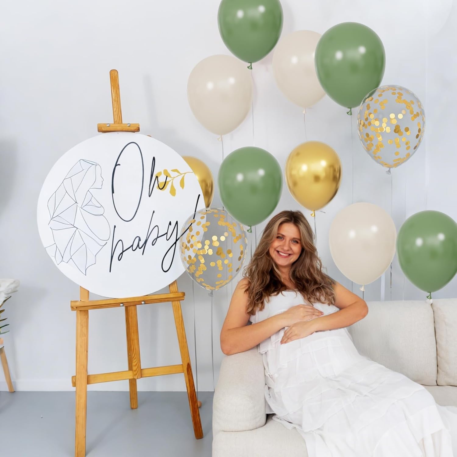 - β¨ Sage green baby shower decorations :The gold balloons in party balloons have a metallic sheen and are filled with gold confetti that catches the light beautifully, adding depth and celebratory luster to your decor.
