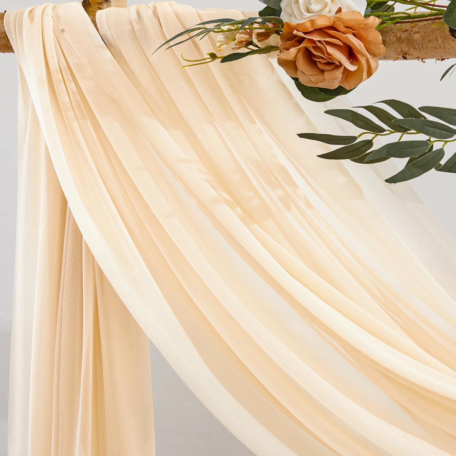 Champagne Wedding Arch Draping Fabric 2 Panels 30'' x 20FT Champagne Drapes Sheer Fabric Backdrop Arch Draping Fabrics for Wedding Ceremony Birthday Party Bridal Shower Decoration