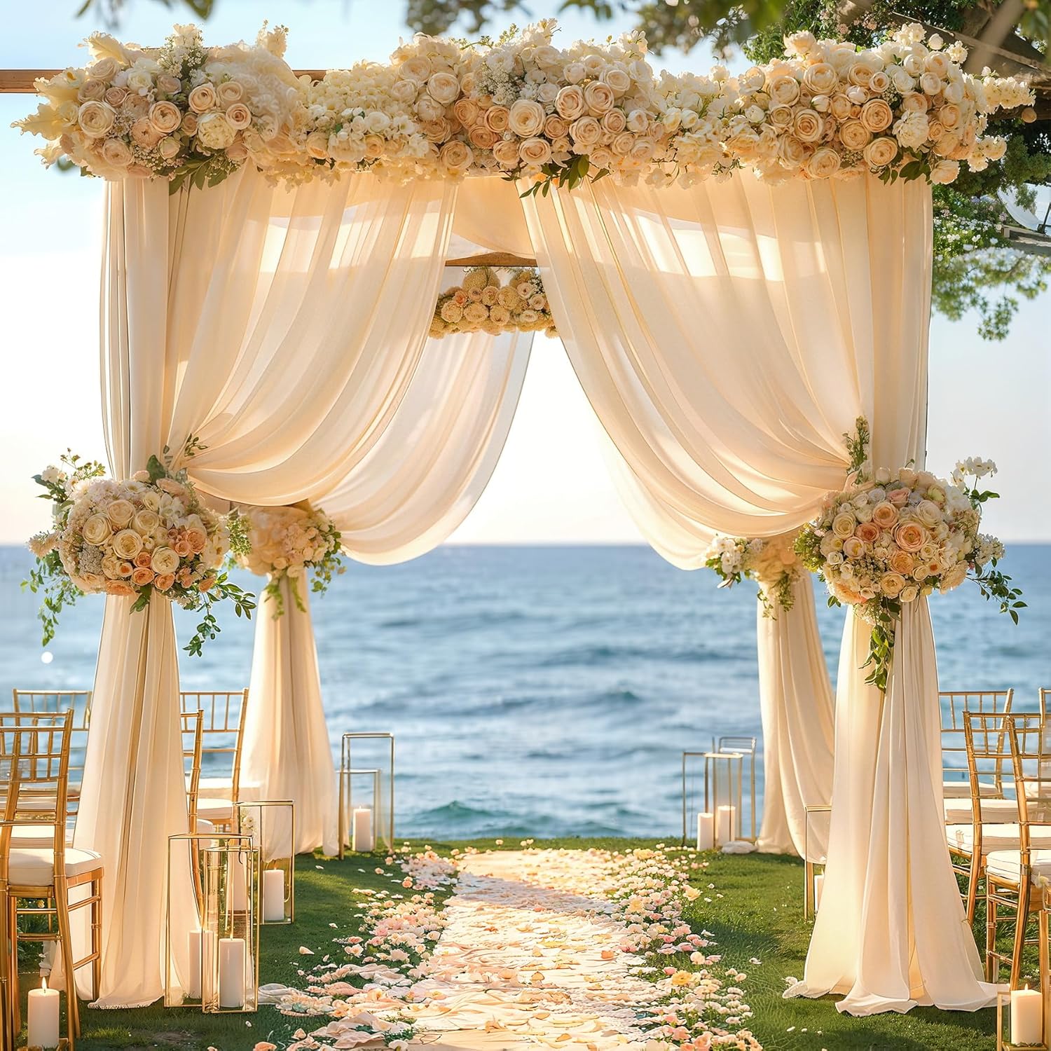 - Wedding Arch Draping Fabric Package: Package including 2 panels champagne wedding arch drapes, each panel is 30" wide and 20ft long.Create flowing floor cascades, artistic folds, or full canopy coverage for ceremonies/photo booths.
