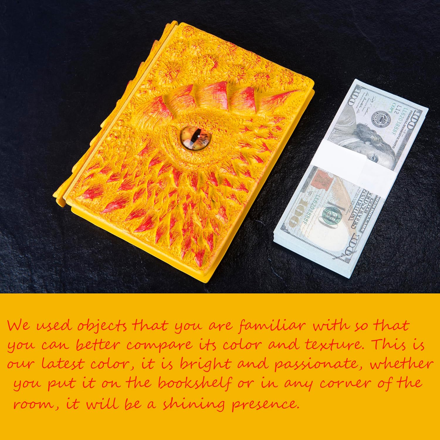 3D Dragon Eye Embossed Journal,Resin Engraving Notebook,Dnd notebook for Dragon Lovers ,Blank Paper,Hardcover Travel Notepad for Writing,Sketchbook,Collection,Gift,Decoration A4 and A5 Size (A5-Yellow)