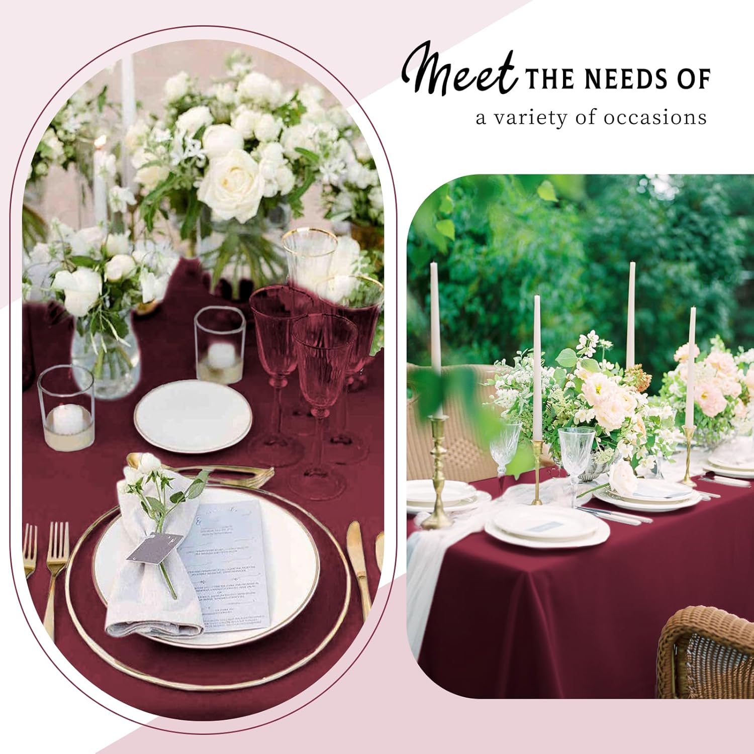 - Package List: You will get 6 packs burgundy satin tablecloth.The size of satin table covers are 57x108 inch/145x275 cm, which is large enough to decorate a table that can accommodate 10-12 persons.The tablecloth size is usually larger than your table size. Please measure your table size before buying.