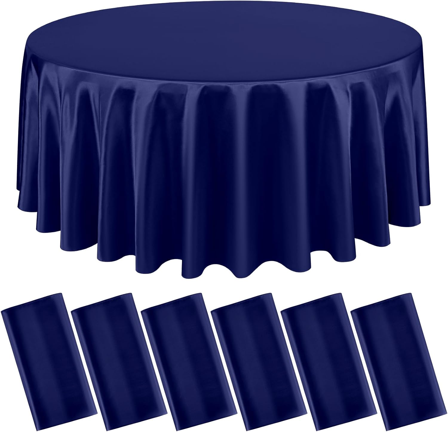 6 Packs Satin Tablecloth 120 Inch Navy Blue Round Table Cloth Silk Tablecloth Smooth Fabric Overlay Satin Table Cover Decoration for Wedding Party Banquet Events