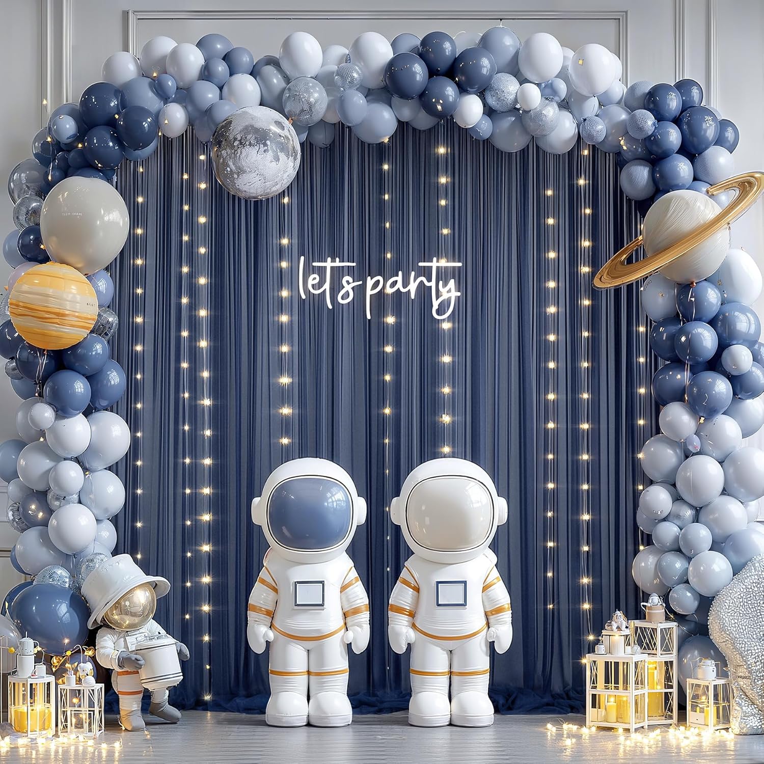 20×10ft Navy Blue Tulle Backdrop Curtain with Lights String for Parties, Sheer Photo Backdrop Curtains for Wedding Party Photography Background