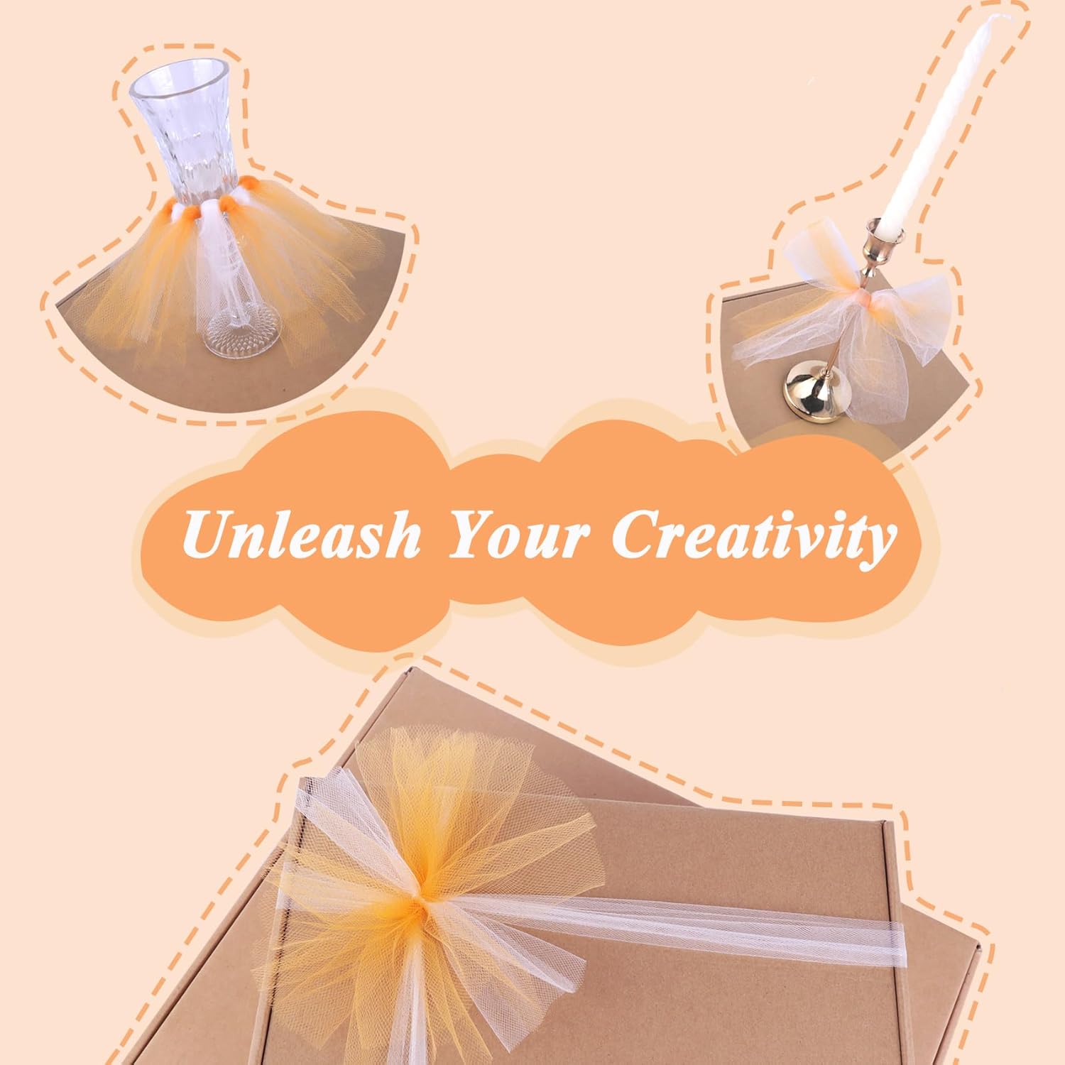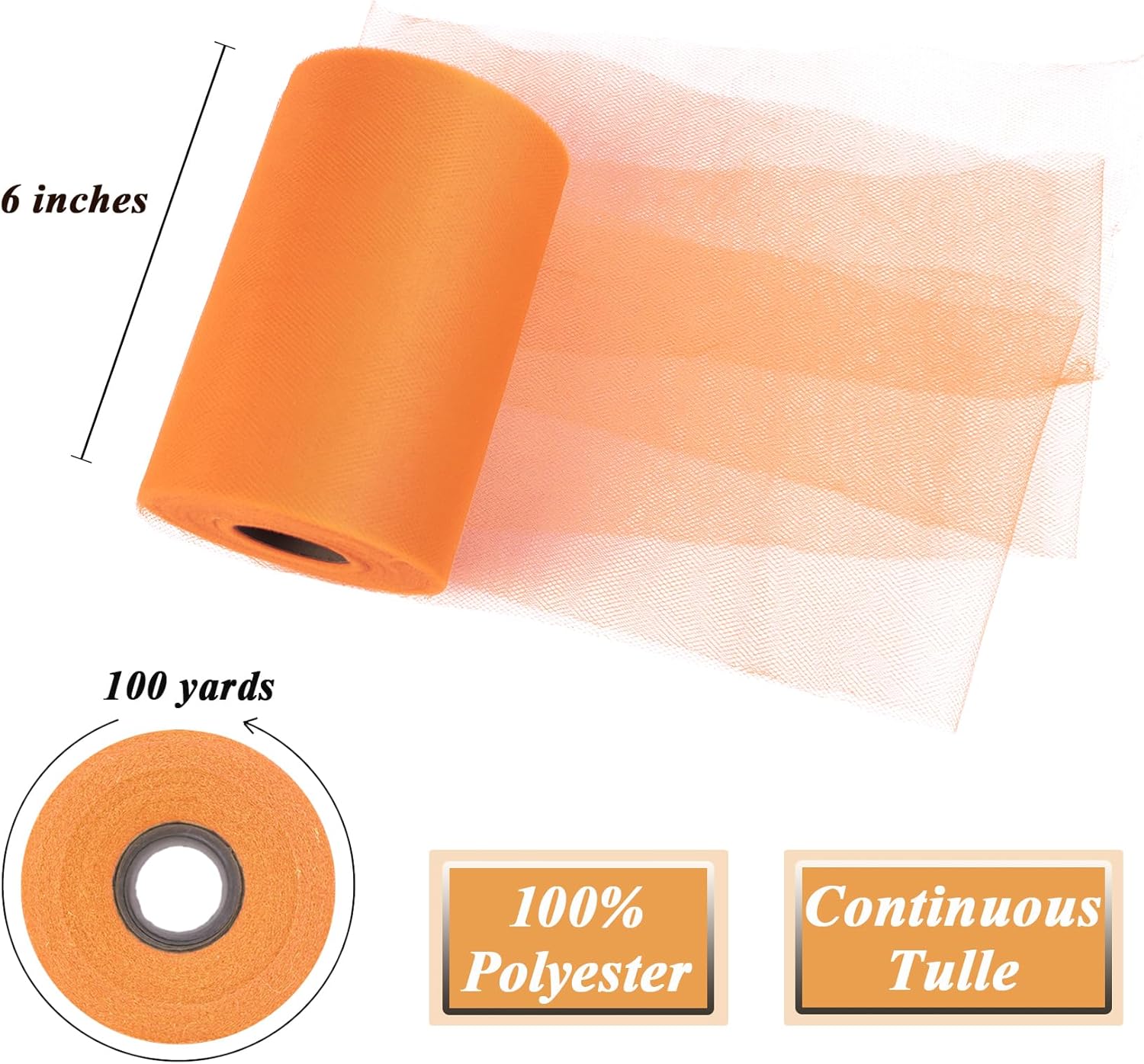 Orange Tulle Fabric Roll 6”by 100 Yards (300 ft) Soft Tulle Spool for DIY Crafting Favor Supplies, Tutus, Wedding, Party Decorations, Gift Wrapping