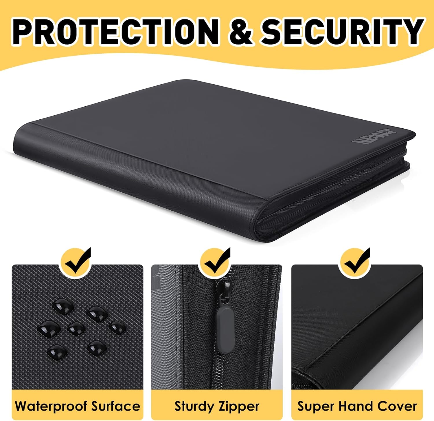 - 【Durable & Safe】This card binder is made of high-quality PU material,which is waterproof,shockproof,sturdy, durable and not easily deformed.The external closed zipper and acid free clear inner card sleeve can protect the safety of your cards,prevent warping,stains,and damage,ensuring that your precious collection cards are in perfect condition