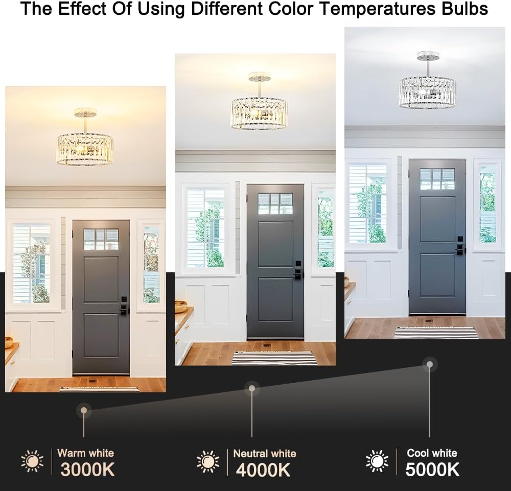 - 【Modern Crystal Ceiling Light Chandelier】This crystal ceiling light chandelier features chrome frame with clear crystal shade. Using 3*E12 40W bulbs can brighten up to 86-161 sq ft under 8 ft ceilings, perfect for kitchen, hallway, living room or closet