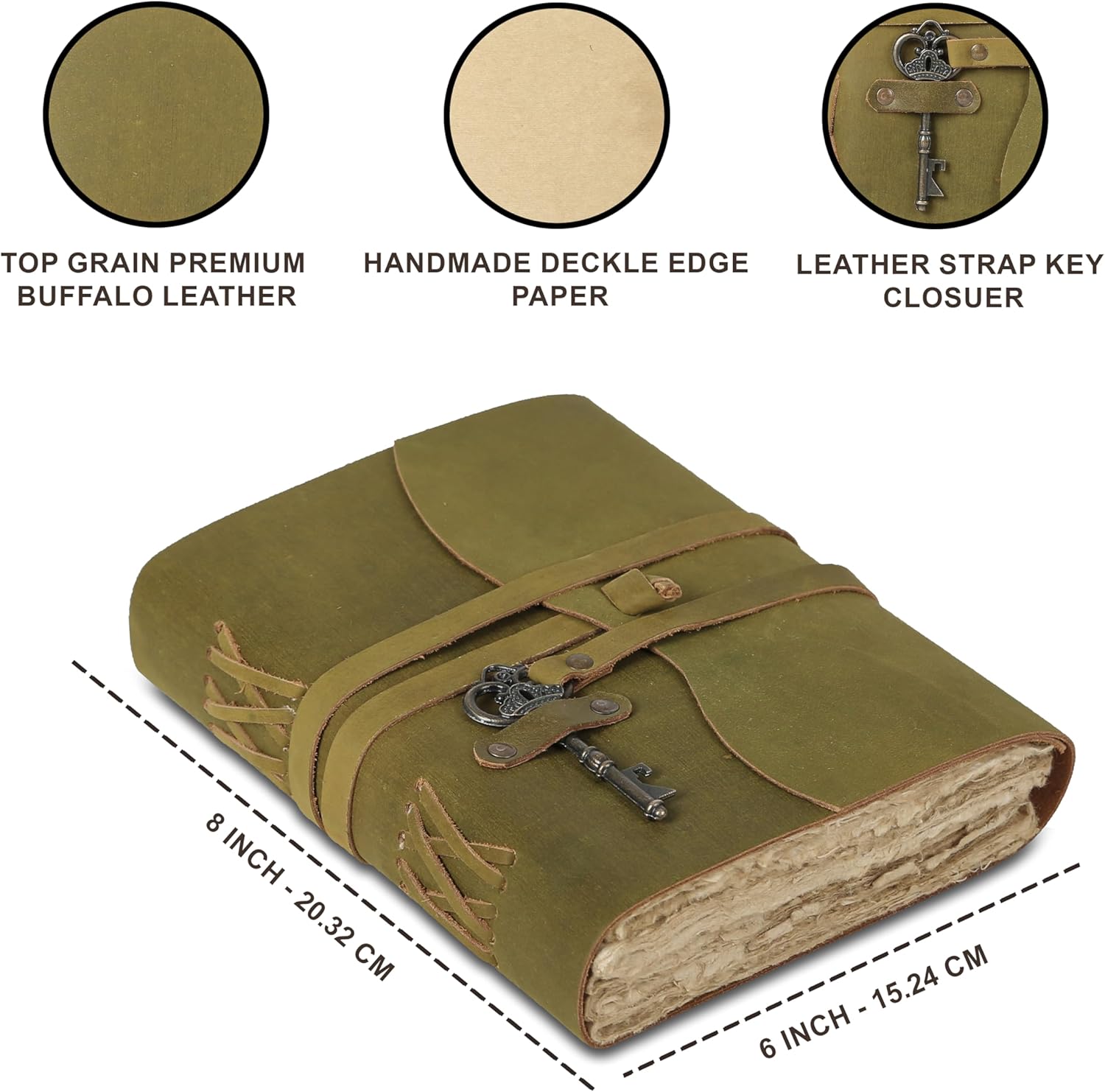 - Sturdy Binding And Vintage Key Closure - The Leather journal comes with lined deckle edge paper. Sturdy hand-stitched binding ensures no paper is unfastened from your antique notebook. The leather-based wraparound with the vintage key keeps the journal's papers safe and secure.