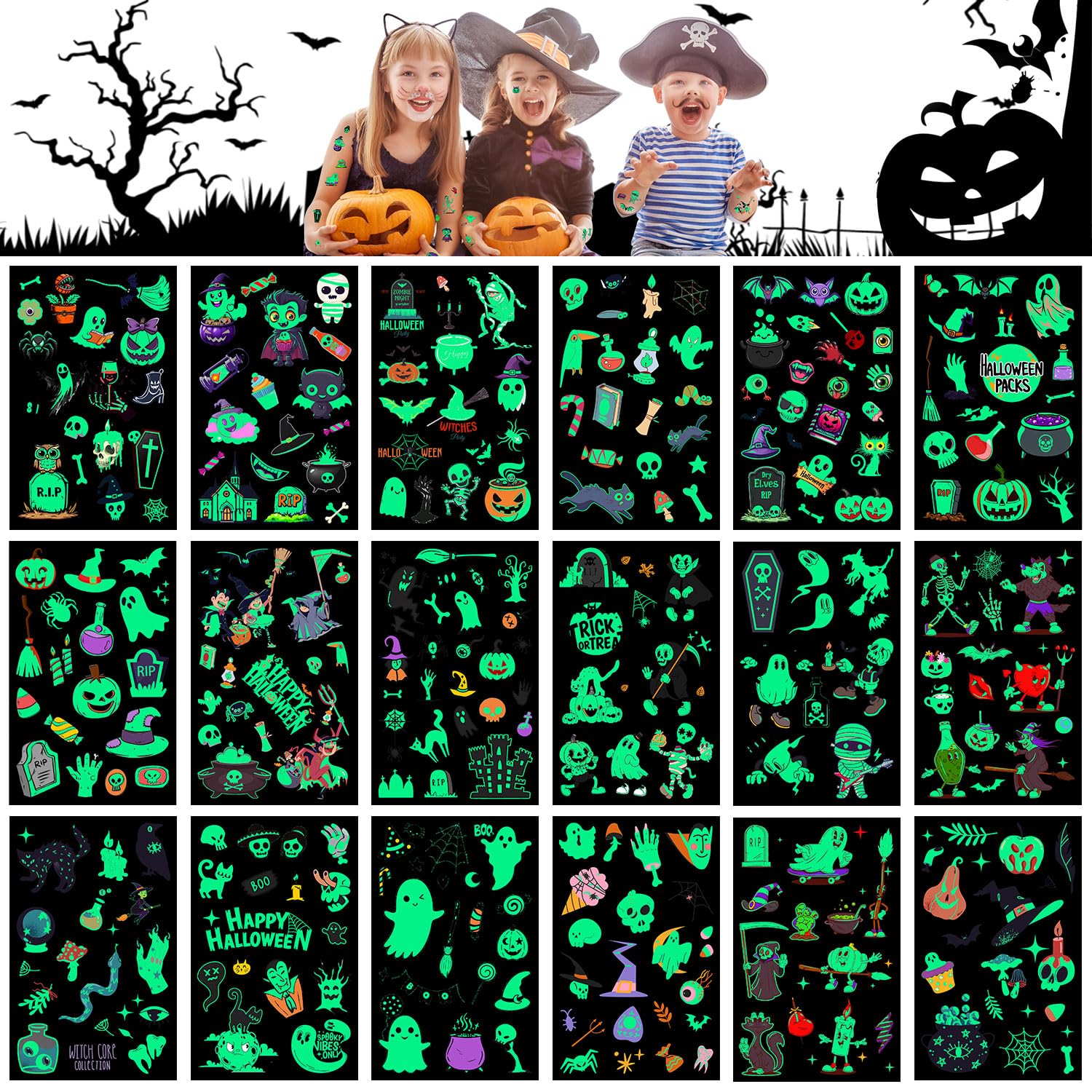 - Wide Applicable: You can stick these Halloween glow in the dark tattoos on your body or some smooth objects, such as glass, stainless steel. You can use Luminous Halloween Temporary Tattoos as gifts and decorations for Halloween party role-playing dressing up accessories, Day of the Dead, night parties, scary makeup dressing.Ideal for treat bags, classroom prizes, carnival giveaways, and Halloween event favors. Bulk pack for big celebrations!