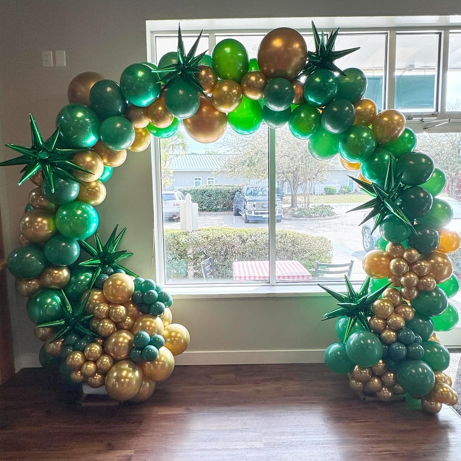 - Sage Green and Retro Yellow Balloons Set: This Dark Green Yellow Gold Balloons kit includes 35 high-quality 12-inch balloons in three colors: dark green latex balloons, retro yellow latex balloons and chrome gold latex balloons, plus a yellow ribbon. It’s perfect for decorating forest jungle safari theme party, sport theme party, graduation, and summer garden parties, adding a vibrant touch to any celebration