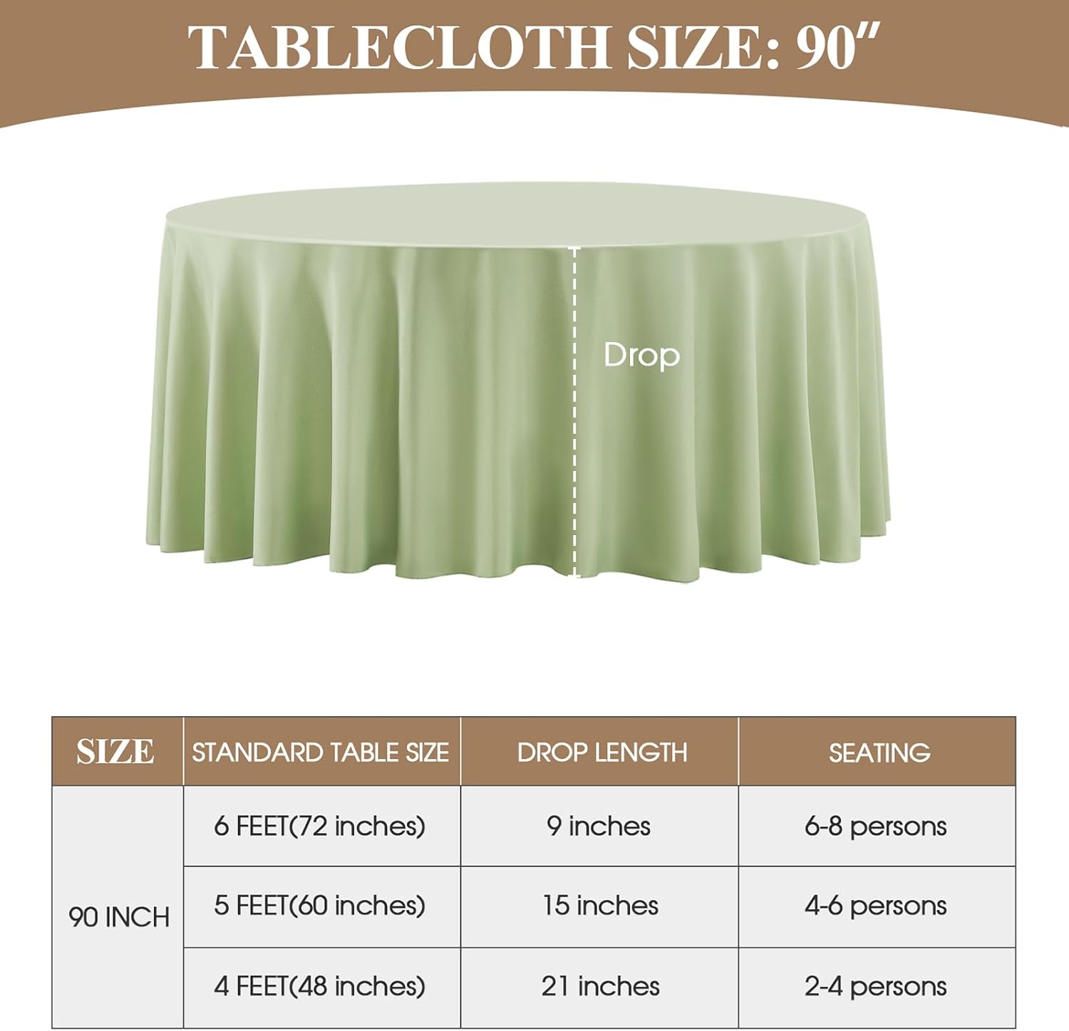 - Suitable Size: This polyester round tablecloth has multiple sizes to choose from, 90, 108, 90, 132 inches, which can meet the needs of tables of different sizes. In order to buy a tablecloth that is more suitable for your table, please measure the actual size of your table before purchasing and refer to our size chart