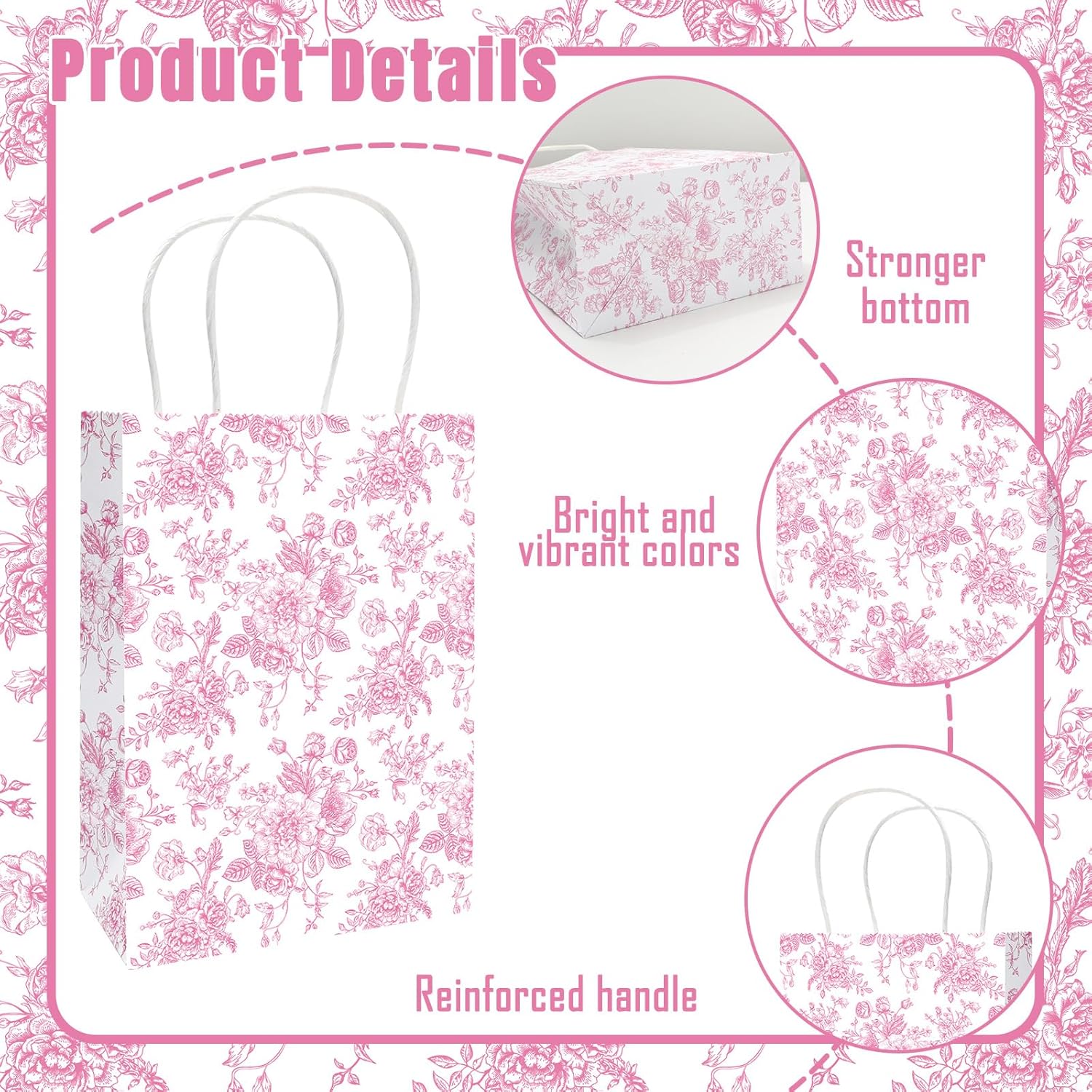 - DELICATE DESIGN: Our paper bags are patterned with pink flowers against the white background, vintage and aesthetic, full of fun, suitable for various occasions