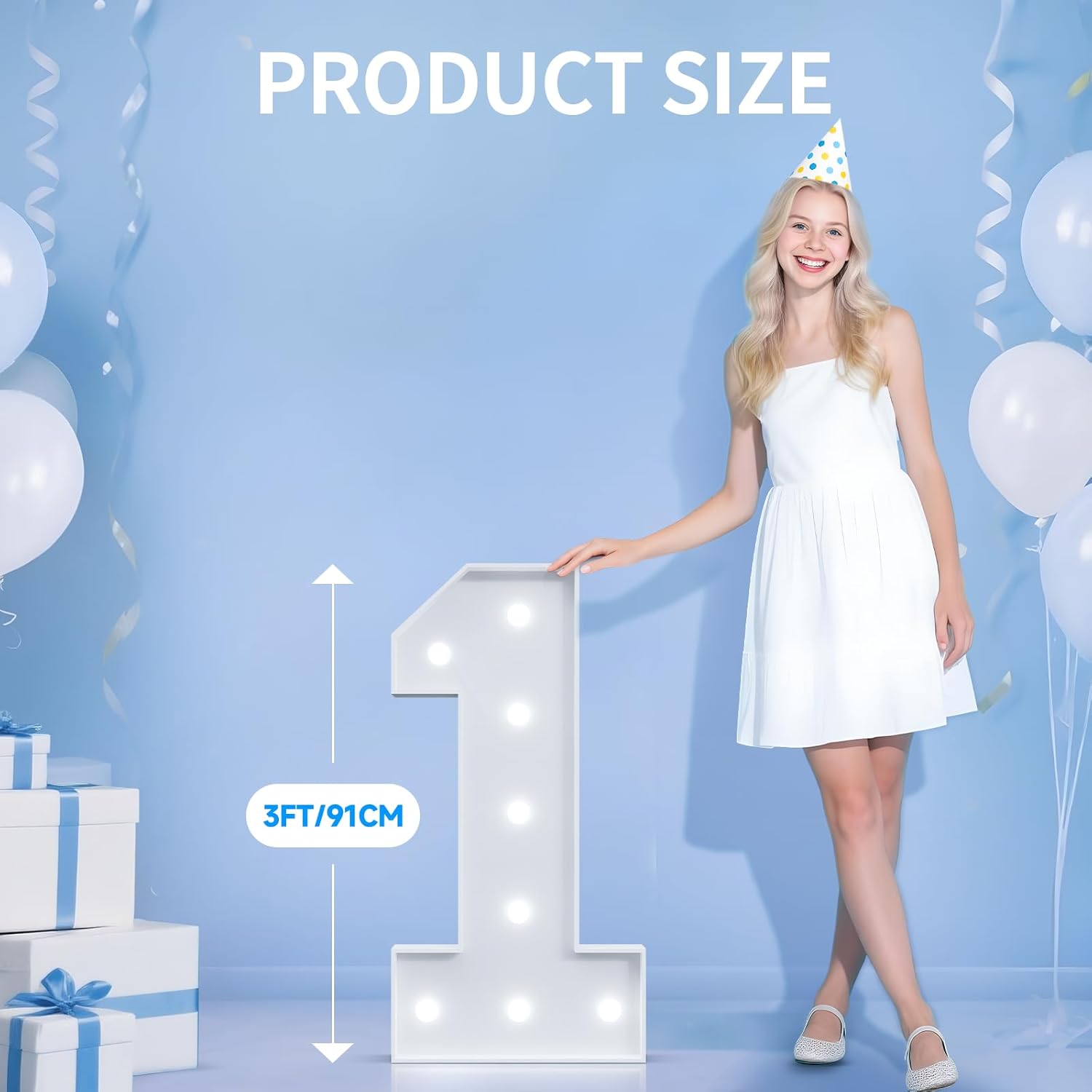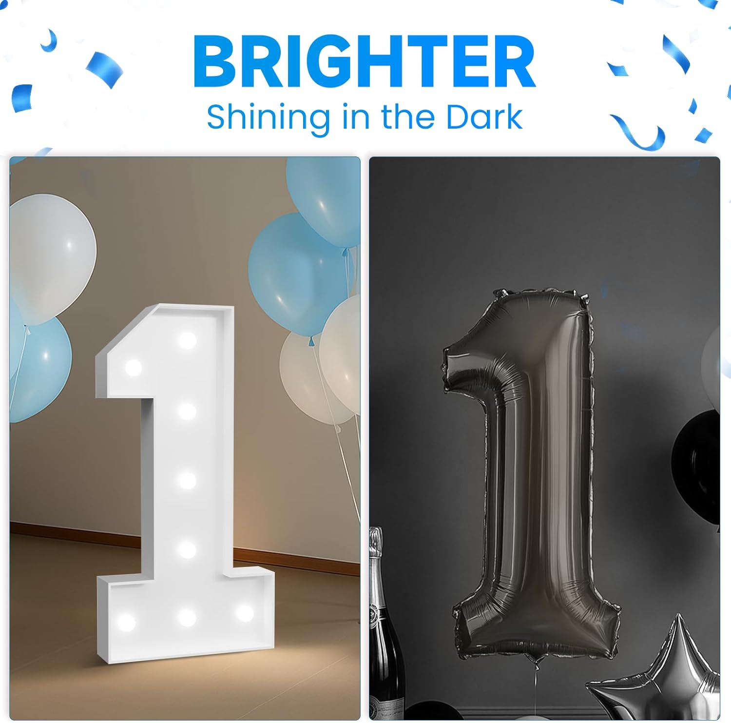 - [Elegant Design]Our 3ft marquee numbers set features cool white string lights, creating a bright and refreshing ambiance. The soft, white glow adds a comfortable and pleasing atmosphere, making it the perfect addition to any party decor.