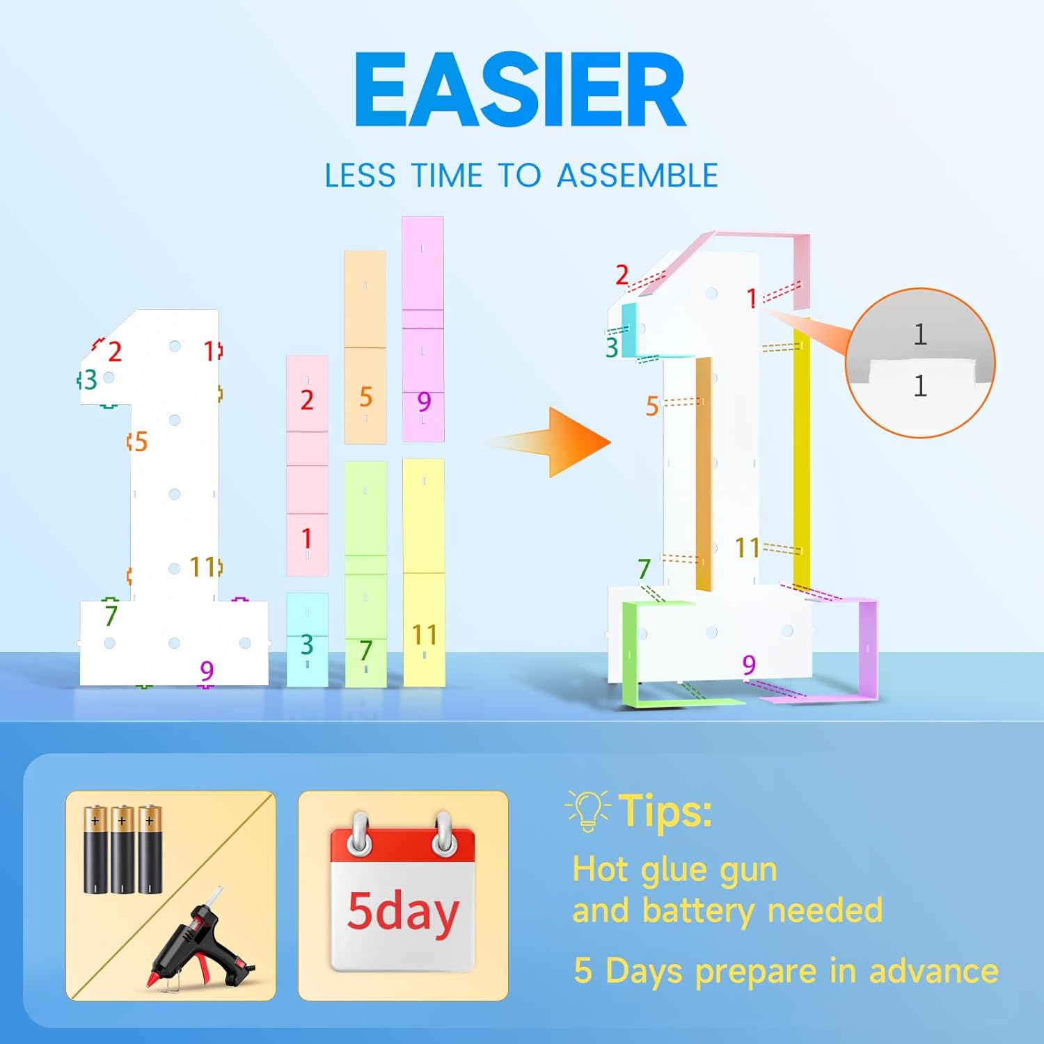- [Easy to Assemble]Assembly is simple and we recommend doing it 5 days before your party. You'll need a glue gun, glue sticks, and batteries (package not included). For assistance, follow the instructions or watch our video guide.
