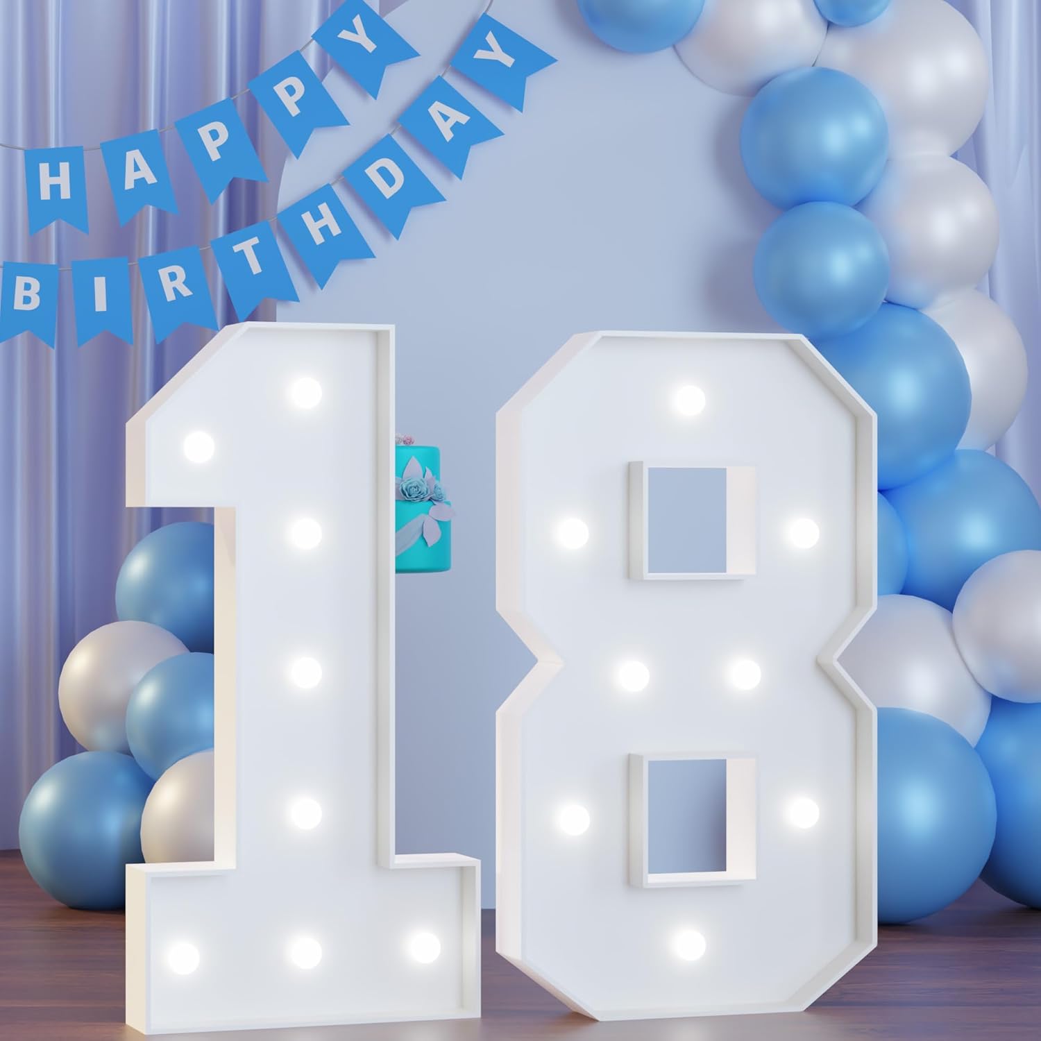 - [Package Include]You will get 2 pre-cut white marquee numbers "18", 2 cool white bulb strands (8 bulbs per strand), a user manual for assembly instructions.