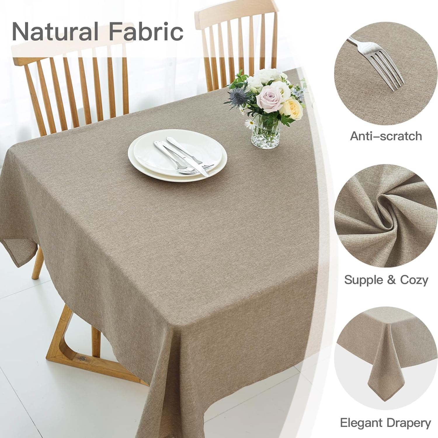 maxmill Linen Texture Tablecloth Water Resistance Antiwrinkle Spillproof Wipeable Washable Fabric Table Cloth for Dining Room, Buffet Banquet Party Holiday Dinner, Rectangular 60 x 108 Inch, Mocha