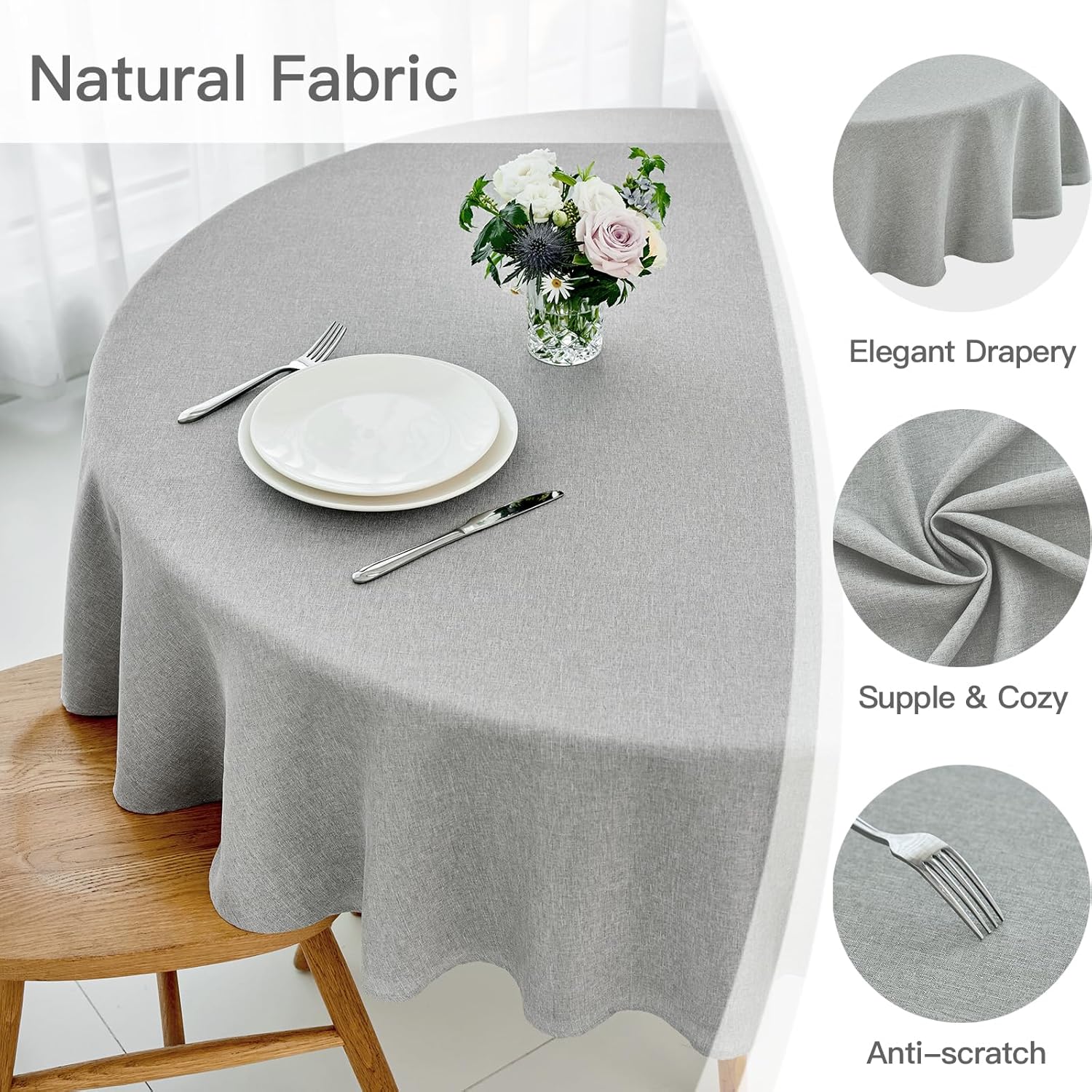 maxmill Linen Textured Tablecloth Spill-Proof Stainproof Wrinkle Free Washable Fabric Table Cloth for Circular Table Cover, Dining Room Buffet Banquet Party Holiday Dinner, Round 70 Inch Light Grey