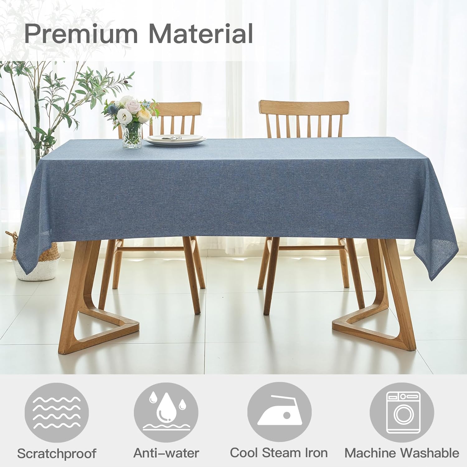 maxmill Square Linen Textured Tablecloth Waterproof Spillproof Wrinkle Free Slubby Textured Table Cloth for Dinner and Party Washable Wipeable Fabric Table Cover Decoration, 60 x 60 Inch, Demin Blue