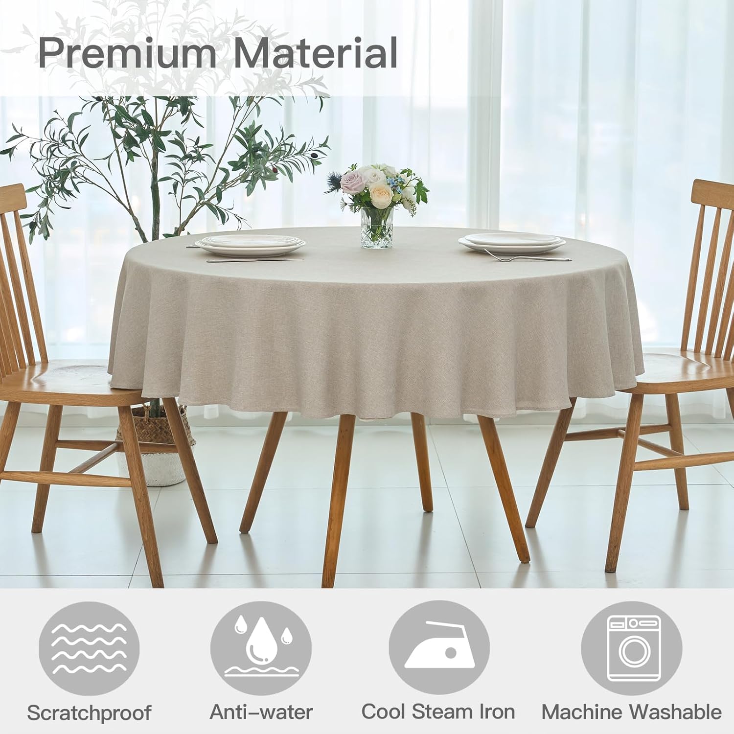 maxmill Round Linen Textured Tablecloth Spill-Proof Stainproof Wrinkle Free Washable Fabric Table Cloth for Circular Table Cover, Dining Room Buffet Banquet Parties Holiday Dinner, 70 Inch Linen
