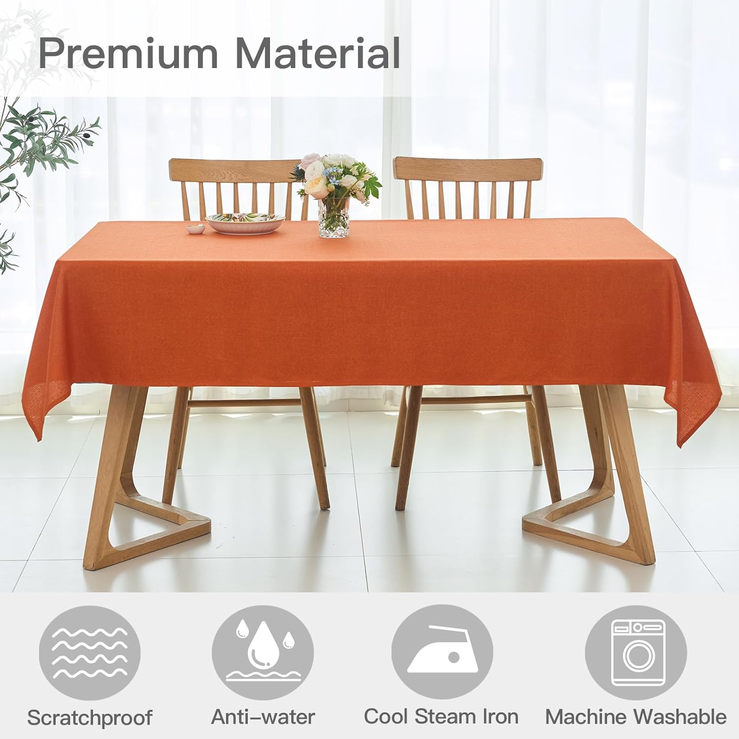 - **Premium Fabric: ** Crafted of premium polyester jacquard fabric to ensure the protection of your table and furniture from scratches. This table cloth is durable, soft, supple, spill-proof, wipeable, and wrinkle resistant.
