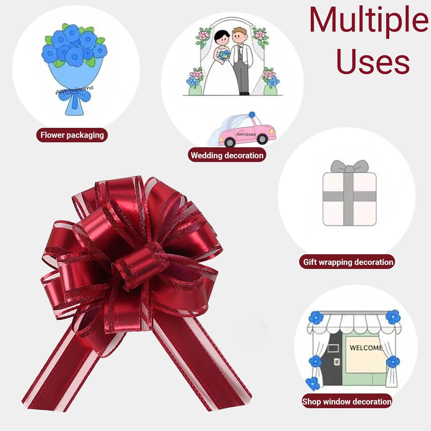 - PULL BOWS PACKAGE CONTENTS: Set of 10 elegant burgundy red pull bows, each measuring 4 inches in diameter when fully assembled - perfect for gift wrapping and decorations