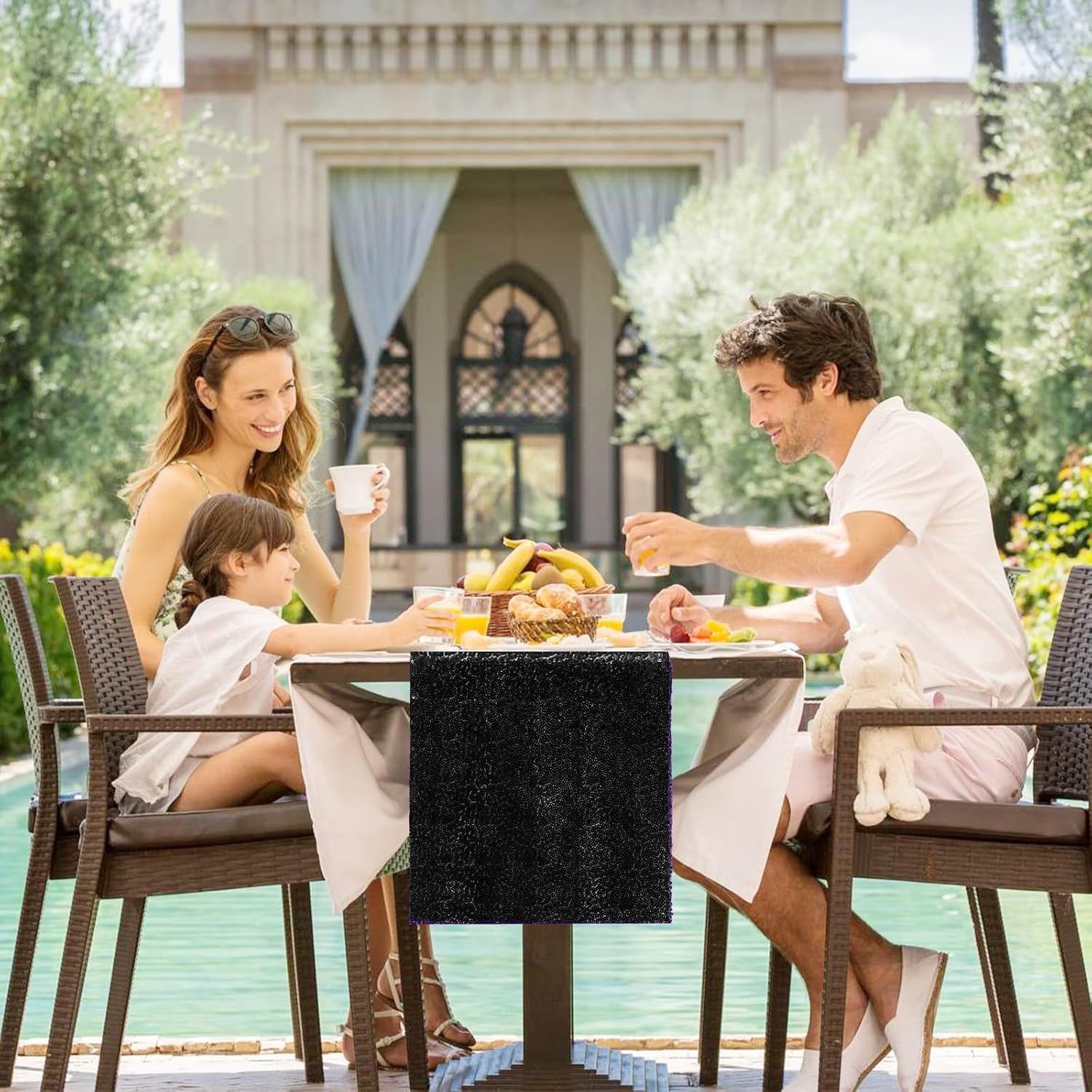 - High Quality Material: The sequin table runner is made of the polyester and sequins. 3mm glitter round sequins sew tightly on the mesh fabric, all the edges of the sequin table runners are well folded. It's normal for a few sequins fall off when you first use, please shake them off.