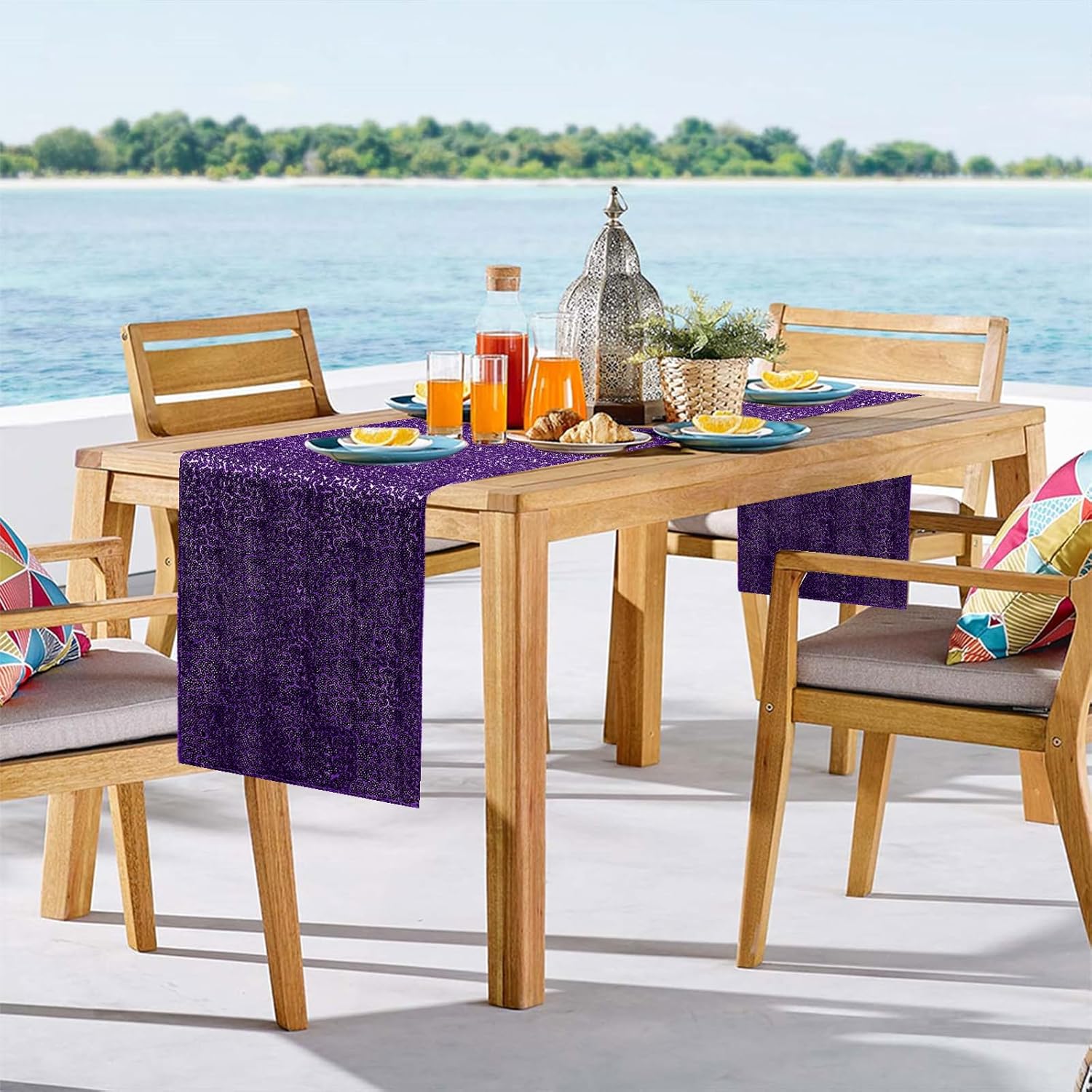 6 Packs 12 x 72 inches Sequin Table Runner, Purple Glitter Table Runner for Birthday Party Supplies Wedding Engagement Baby Shower Holiday Celebration Event Decorations