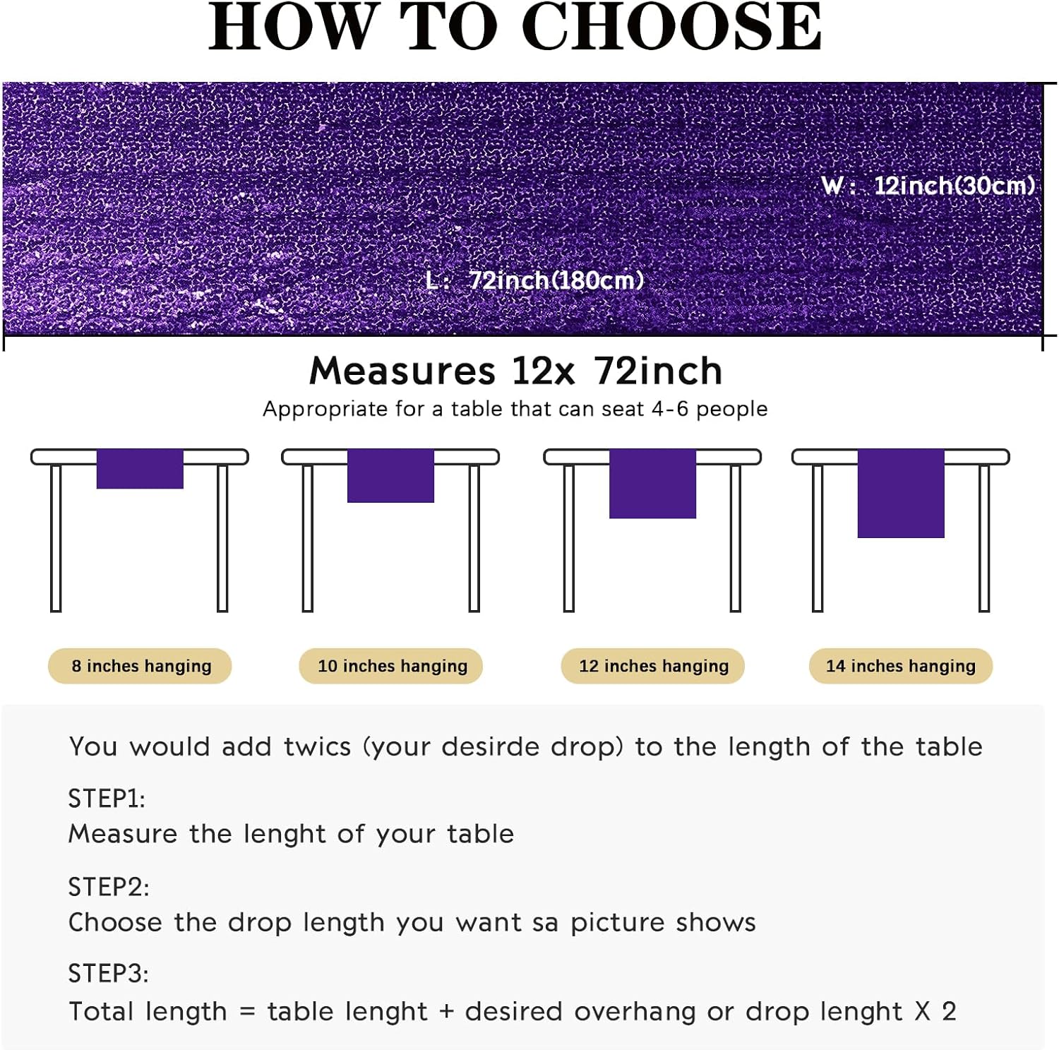 - Package Include: Each sequin table runner measures 12" x 72", total 6 pieces, perfect for a table that seat 4-6 people. The sequin table runner is appropriate for rectangle or round tables.
