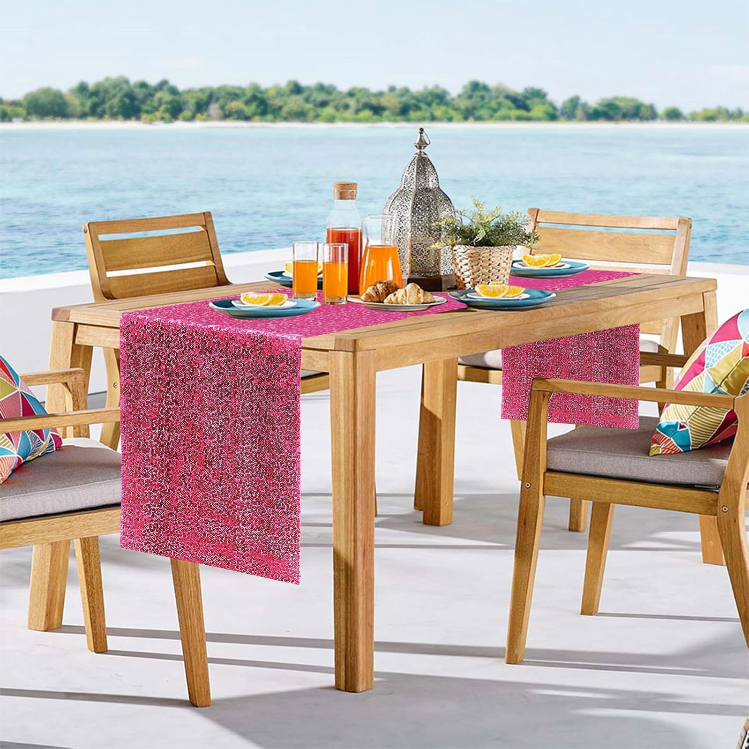 2 Packs 12 x 72 inches Sequin Table Runner, Hot Pink Glitter Table Runner for Birthday Party Supplies Wedding Engagement Baby Shower Holiday Celebration Event Decorations