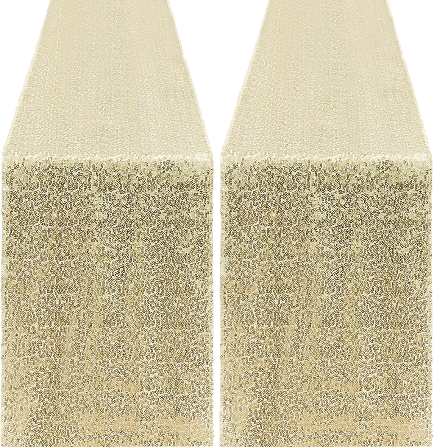 2 Packs 12 x 72 inches Sequin Table Runner, Champagne Glitter Table Runner for Birthday Party Supplies Wedding Engagement Baby Shower Holiday Celebration Event Decorations