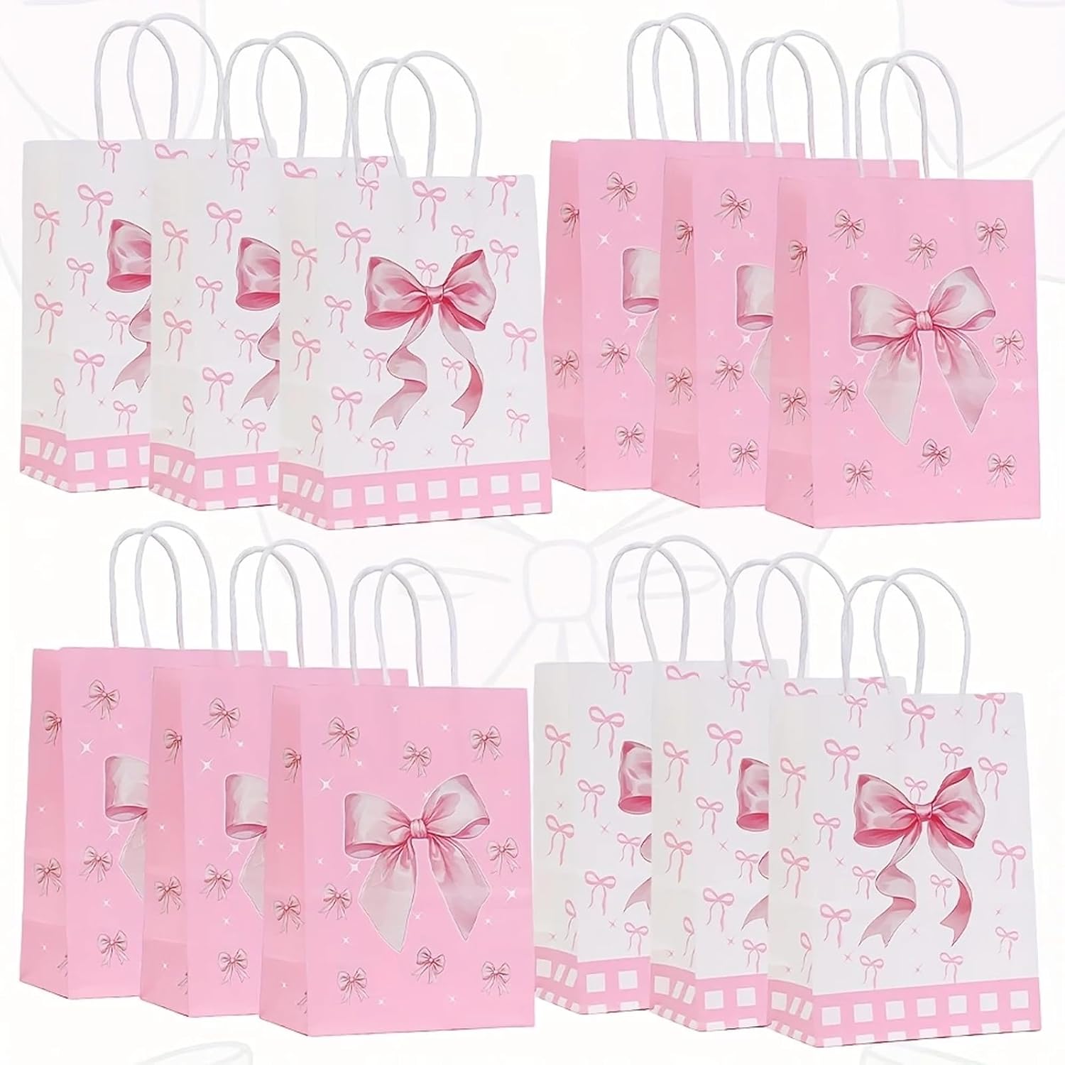 24Pcs Pink Bow Party Favor Bags,Gift Bags with Handles for Bridal Engagement Baby Shower,Barbie themed Goodie Bag Candy Bag for Birthday Bachelor Barbie Party Decoration Wedding