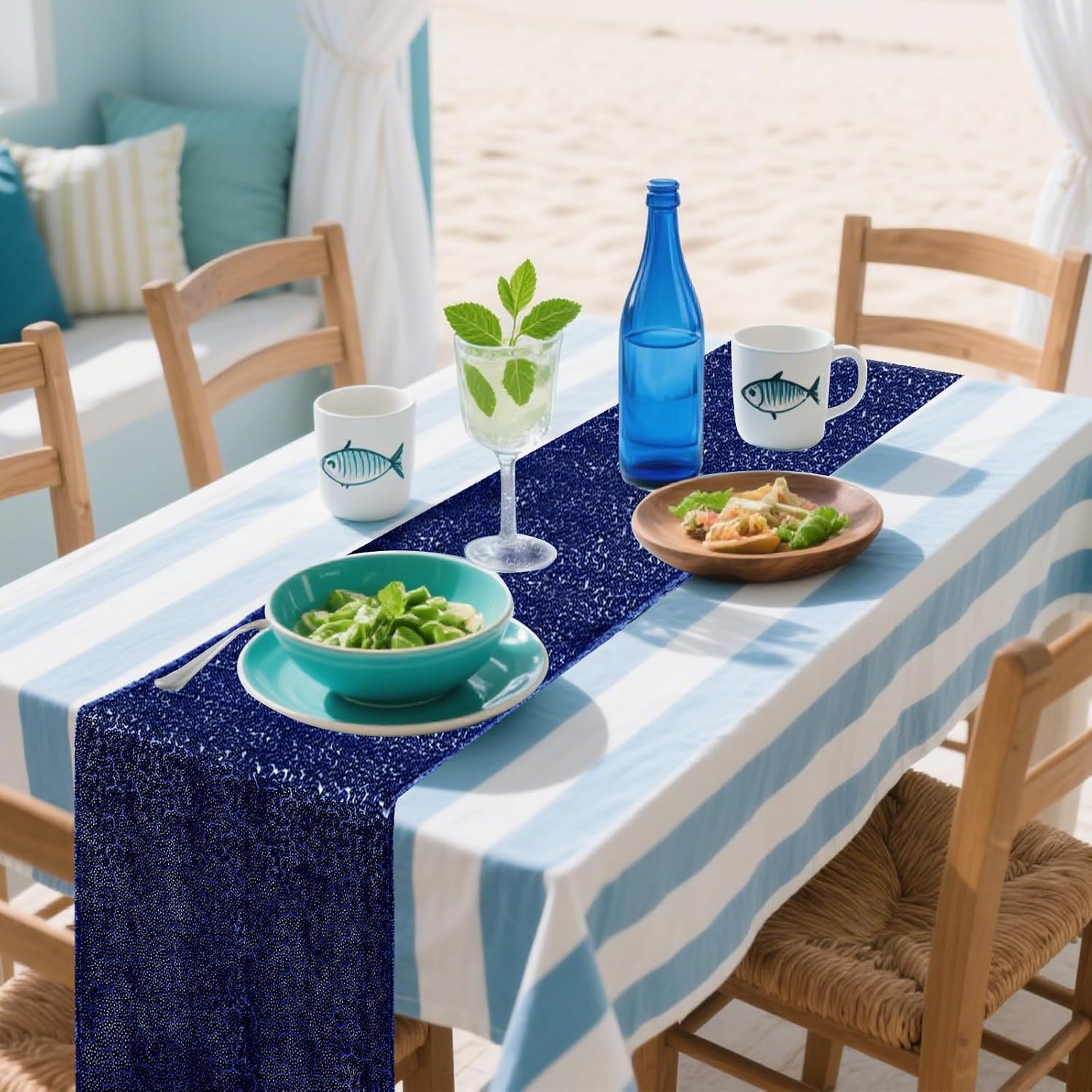 2 Packs 12 x 72 inches Sequin Table Runner, Navy Blue Glitter Table Runner for Birthday Party Supplies Wedding Engagement Baby Shower Holiday Celebration Event Decorations