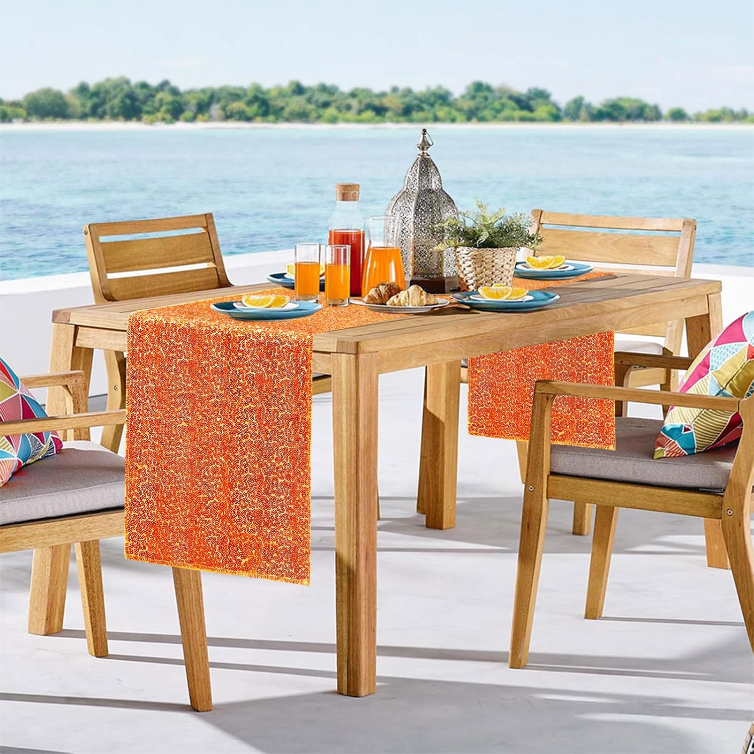 10 Packs 12 x 72 inches Sequin Table Runner, Orange Glitter Table Runner for Birthday Party Supplies Wedding Engagement Baby Shower Holiday Celebration Event Decorations