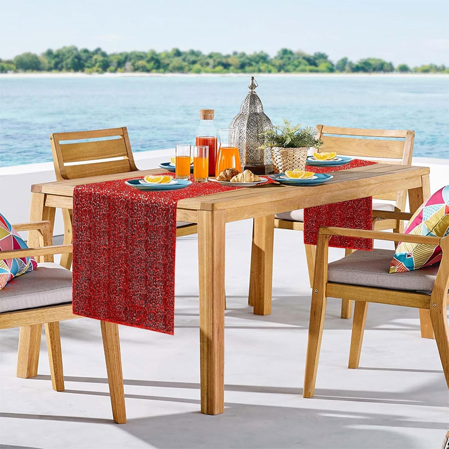 2 Packs 12 x 72 inches Sequin Table Runner, Red Glitter Table Runner for Birthday Party Supplies Wedding Engagement Baby Shower Holiday Celebration Event Decorations