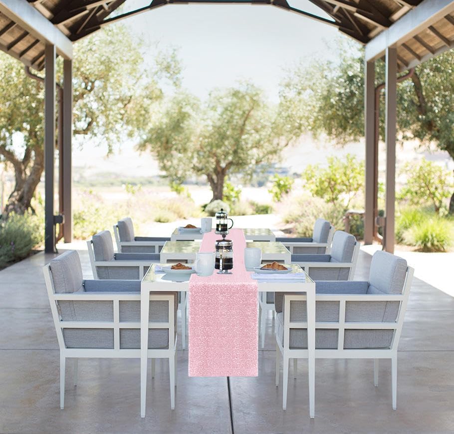 10 Packs 12 x 72 inches Sequin Table Runner, Pink Glitter Table Runner for Birthday Party Supplies Wedding Engagement Baby Shower Holiday Celebration Event Decorations