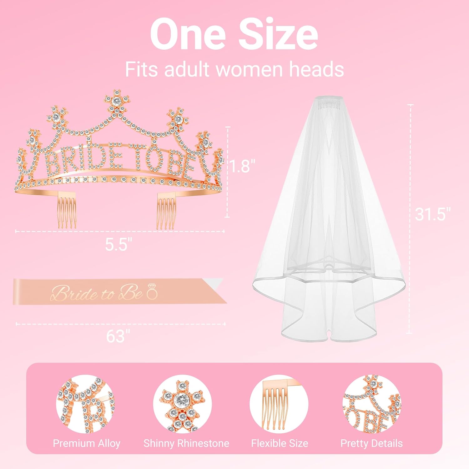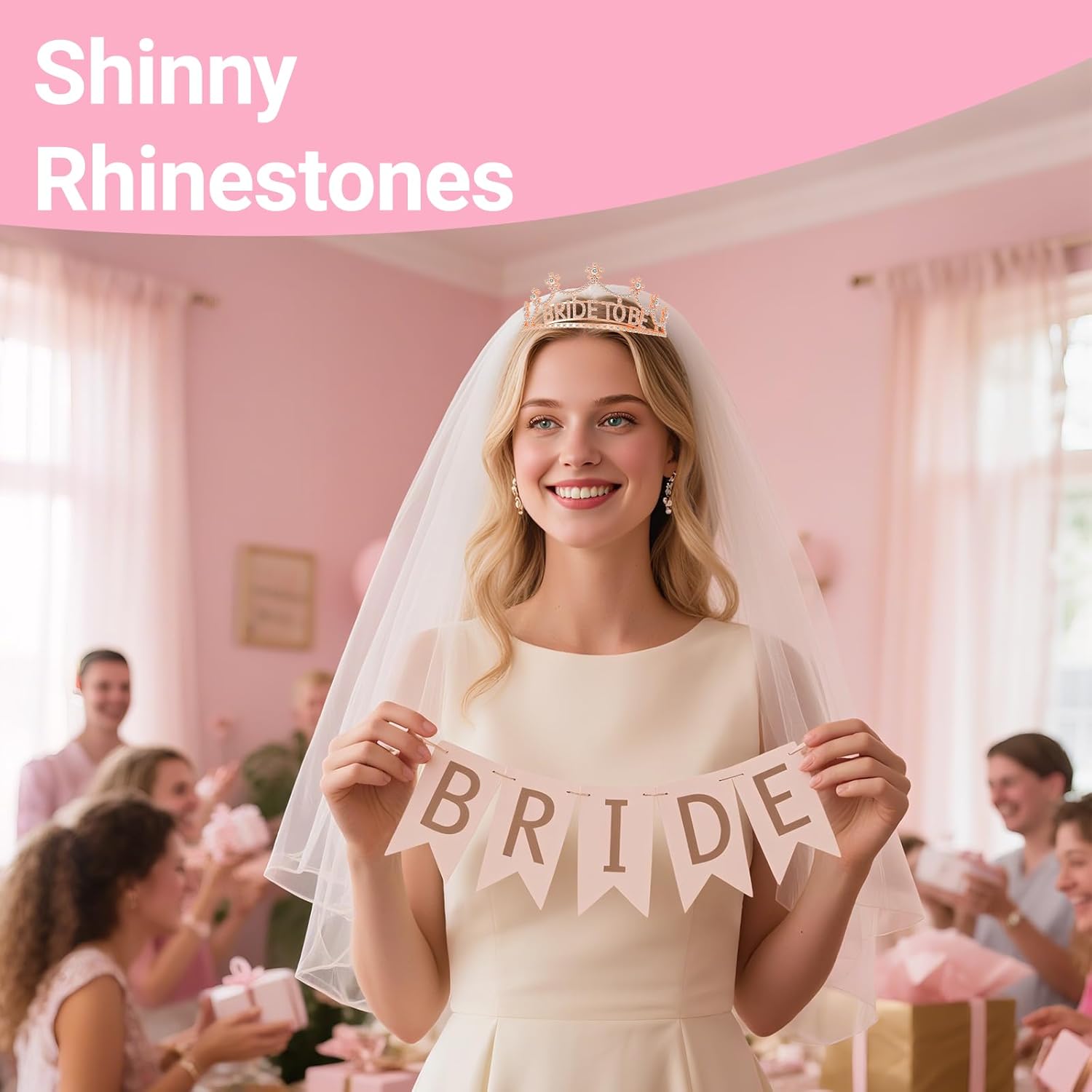 3Pcs Bride to Be Crown with Sash and Veil for Bachelorette Party Decorations,Bridal Shower Accessories for Gift, Favors