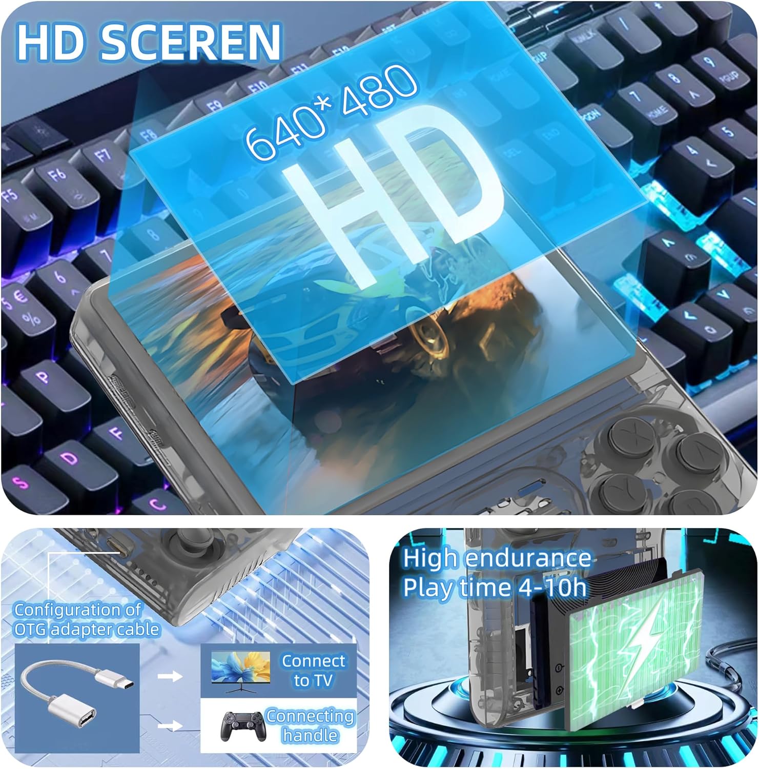 - 【STABLE OPERATING SYSTEM】 This handheld game console is equipped with a powerful 1.5GHz 64-bit K3326 CPU and Mali-G31MP GPU, which ensures stable operation of 2D and some 3D games, providing you with a smoother gaming experience. The handheld also supports more than 10 mainstream emulators, allowing you to enjoy classic arcade games