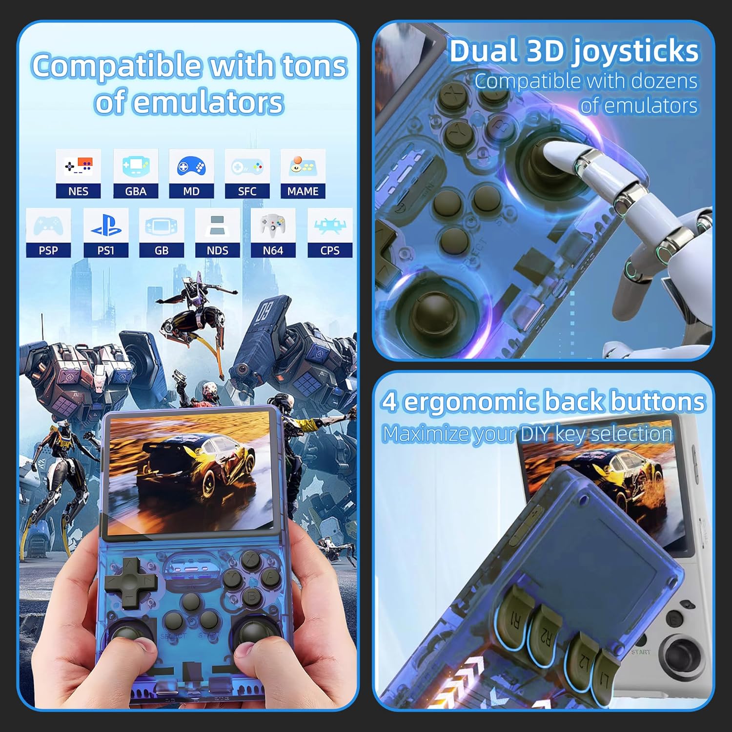 R40S PRO Retro Gaming Console, 30000+ HD Games Handheld Game Console, 3800mAh Rechargeable Mini Retro Video Console with 256GB TF Card, Portable Pocket Arcade (Transparent Blue)
