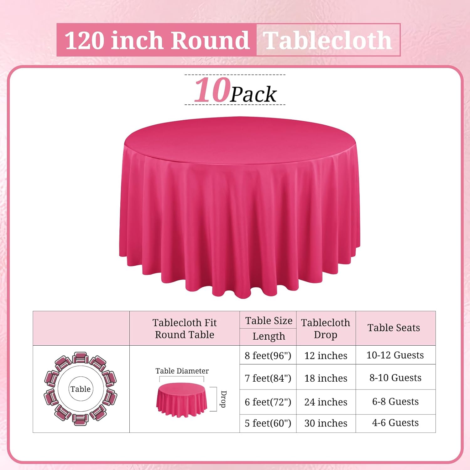 10 Pack Hot Pink Round Tablecloths 120 Inch, Circle Bulk Washable Linen Polyester Tablecloth, Table Cloth Cover for Wedding Buffet Party Banquet Reception Restaurant and Camping
